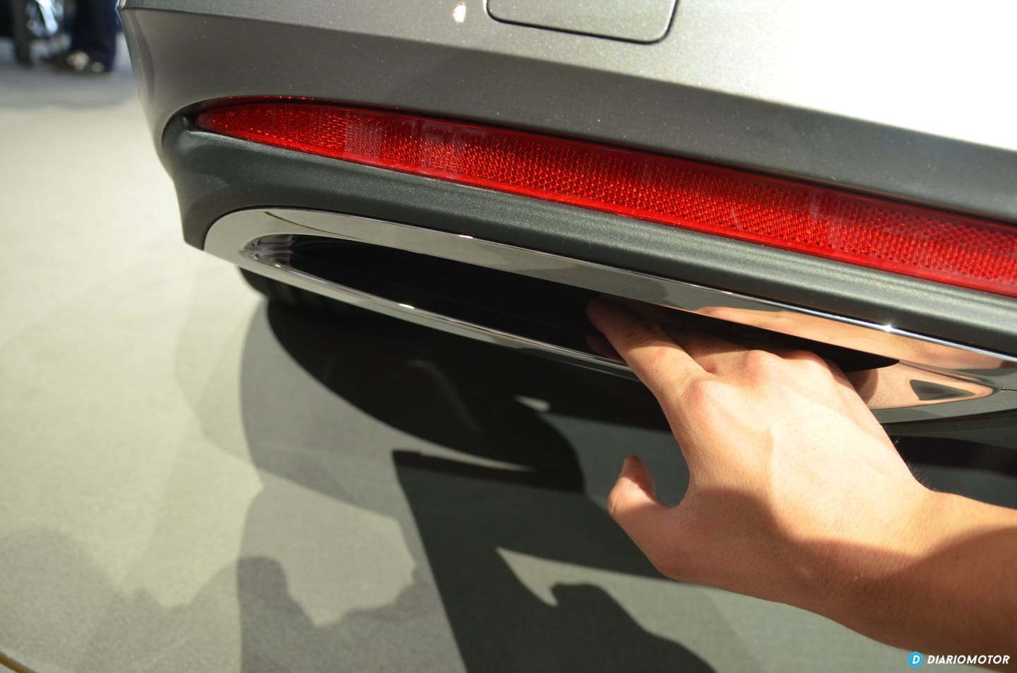 Me impacta su zaga. Aún nos es el momento de bajar los peldaños para ver el coche, en unos minutos tendremos la oportunidad de hacerlo, pero no puedo evitar comentar ya con mis compañeros de grada el aspecto del conjunto de portón, con ese alerón perfectamente integrado y ópticas.