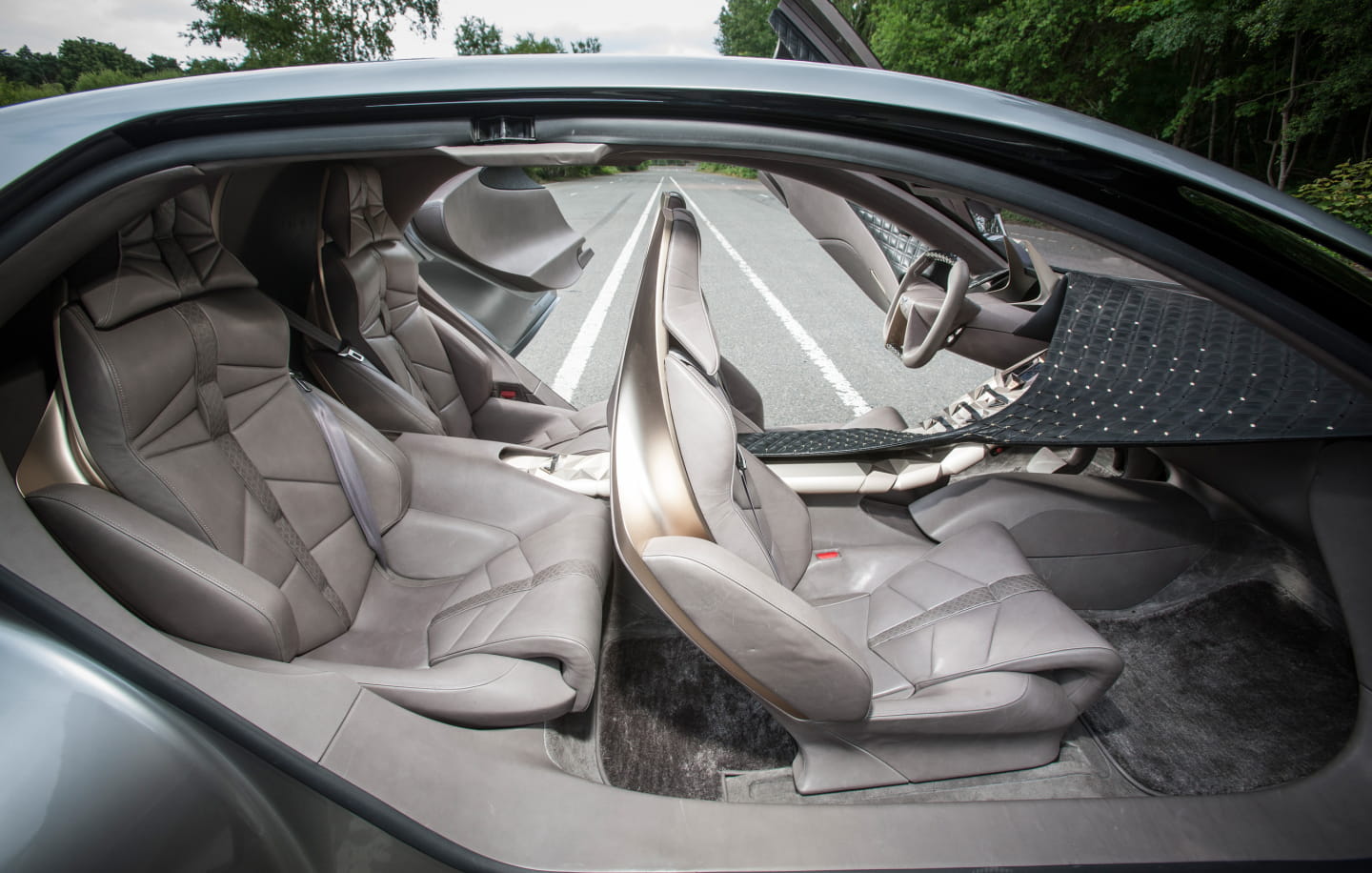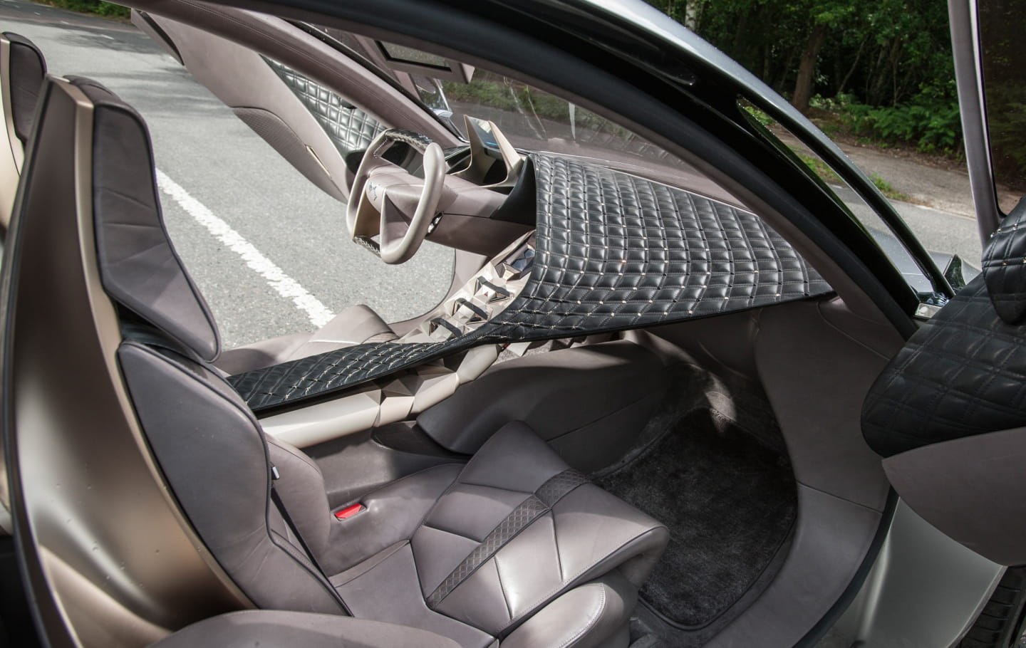 Llamativos asientos, llamativos guarnecidos para las puertas… hasta su techo panorámico se sale de toda norma.