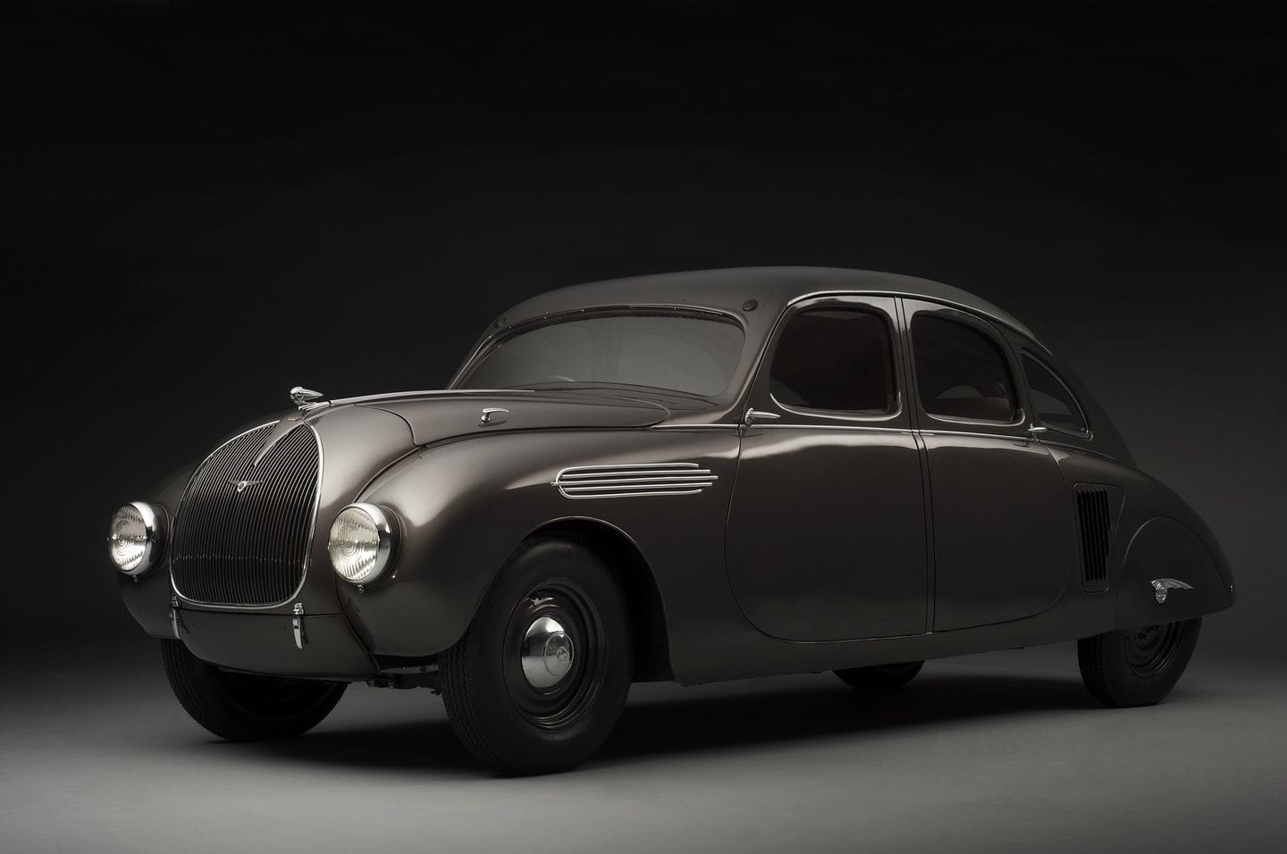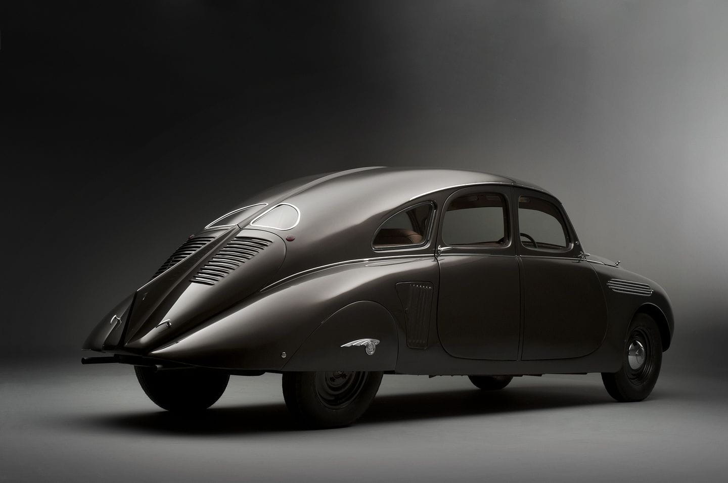 El Skoda 935 Dynamic tenía un diseño arrebatador: fijaos en la caída trasera o en su afilado paragolpes trasero. Esta berlina de cuatro puertas y motor central fue presentada en el Salón de Praga de 1935, pero nunca llegó a ver la luz. Digamos que la situación geopolítica de la zona se complicó ligeramente en los años siguientes a la presentación del 935, por decirlo suavemente. Su diseño en forma de lágrima era lo más radical visto en Europa, y algunas de sus soluciones técnicas en absoluto parecen desfasadas hoy en día.