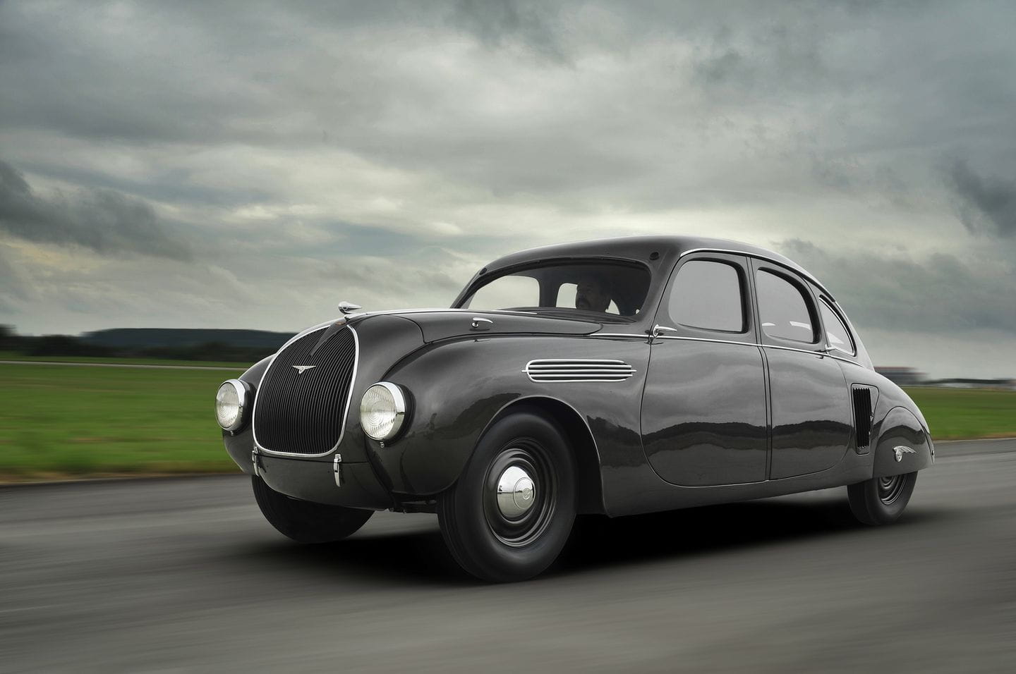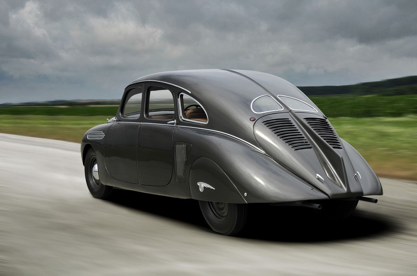 Gracias a su excepcional aerodinámica, era capaz de alcanzar los 140 km/h. Este motor estaba conectado a una caja de cambios manual convencional. En el interior del coche, primaba el espacio y la comodidad. Tenía cinco plazas reales, repartidas en dos bancos corridos. Este coche es un prototipo único, y formó parte de una colección privada desde el año 1939 hasta el año 2012. Es casi un prodigio que no resultase afectado por la Segunda Guerra Mundial, ni el hundimiento de Checoslovaquia tras el «telón de acero».
