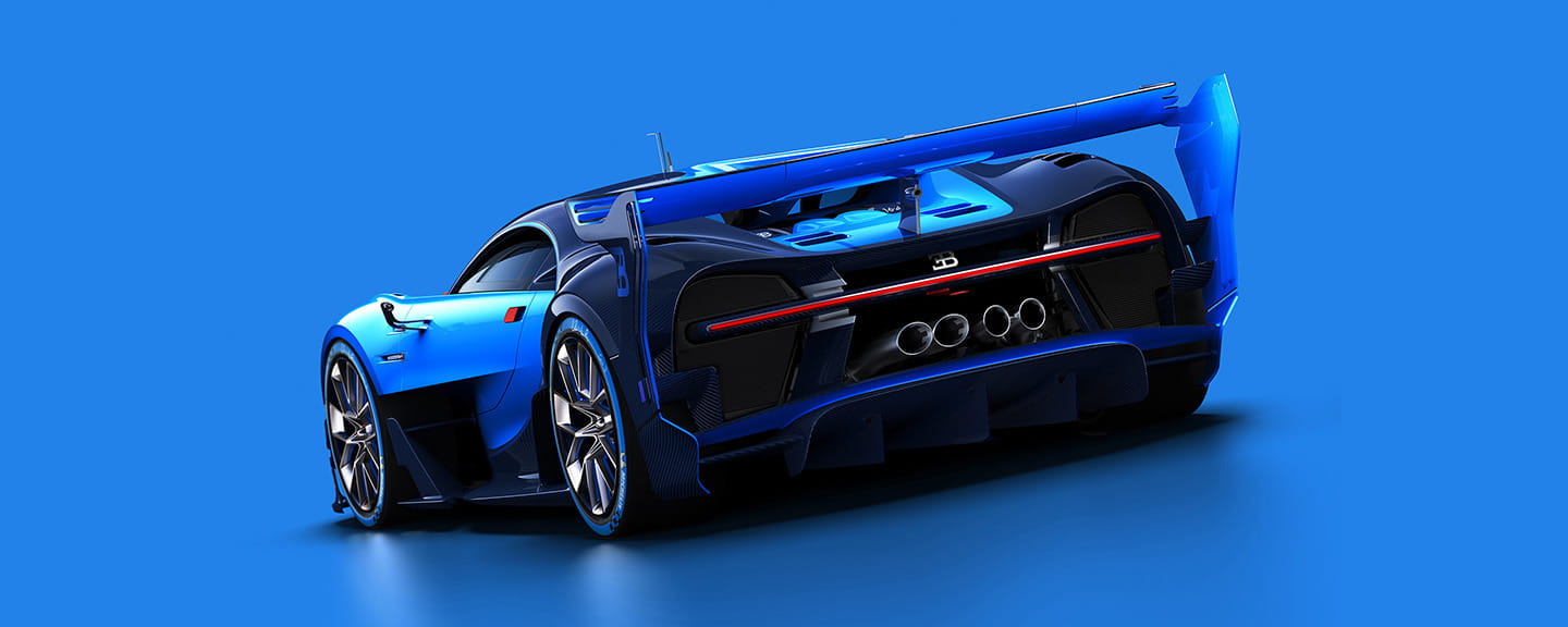El prototipo que estrenarán en Gran Turismo tiene el aspecto de un Bugatti Veyron radicalizado, transformado en un GT de carreras. Un alerón inmenso, numerosos aditamentos aerodinámicos, extensiones de bajos, y un sinfín de mejoras que incluso nos hacen soñar con la posibilidad de un Bugatti de carreras. Pero por desgracia solo lo veremos competir en Gran Turismo 6.