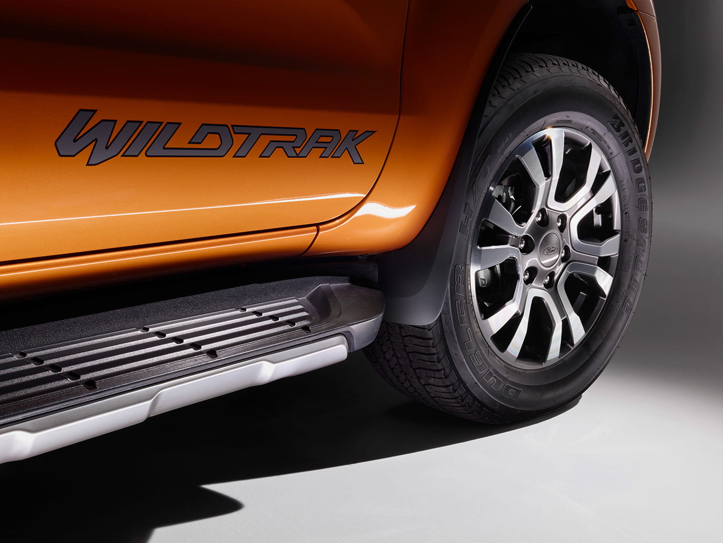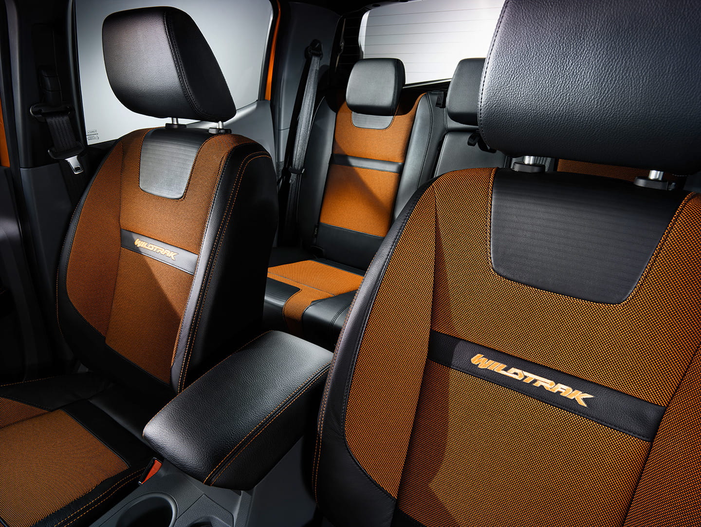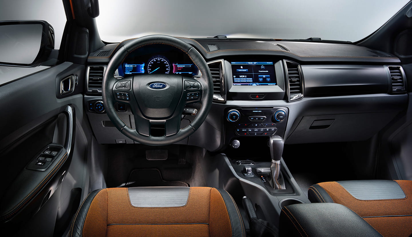En tanto Wildtrak, este Ranger está equipado con un acabado oscuro y detalles metálicos en su parrilla trapezoidal, retrovisores, branquias en las aletas delanteras, barras de techo y pilotos traseros. Cuenta con luces antiniebla rectangulares, llantas de 18″ y adesivos Wildtrak. Así como un acabado de pintura Pride Orange, que podríamos traducirlo como «orgullo naranja».