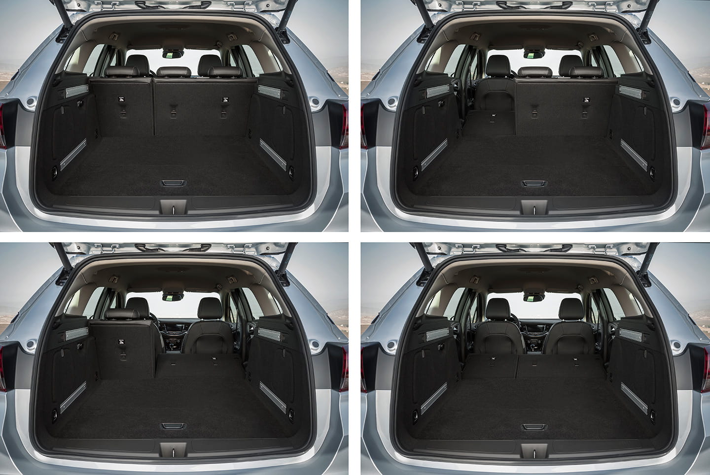 Su maletero, cuenta con una capacidad de hasta 1.630 litros si abatimos su fila de asientos posterior. Desconocemos, aún, la cifra exacta de su maletero con los asientos traseros desplegados, pero ha de ser necesariamente superior a los 370 litros del nuevo Opel Astra. La segunda fila de asientos también goza de respaldos que pueden abatirse en tres piezas, 40/20/40. También podremos equiparlo con diferentes soluciones para la organización de la carga, como los raíles FlexOrganizer.
