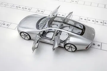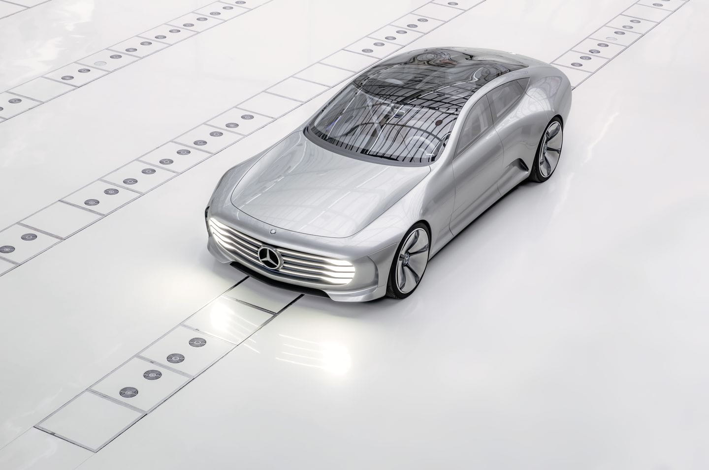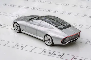 El coche parece una mezcla entre una flecha de plata, un Mercedes Clase S y el prototipo autónomo F015. Su frontal tiene varias barras de LED que crean una barrera lumínica única, ya vista antes en el F015. Las líneas son sencillas pero extremadamente elegantes: su perfil es limpio y sin dudas, con unas grandes llantas de aspecto monolítico. En la zaga se encuentra un espectáculo lumínico inspirado en la estela de los motores de un jet. De aspecto retrofuturista, llegará a un modelo de producción en 2016.