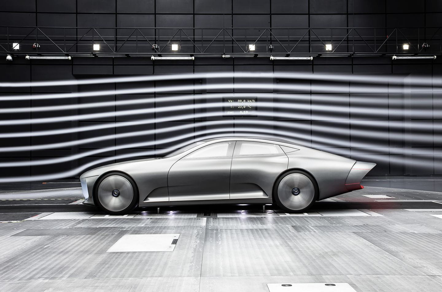 El Mercedes IAA Concept tiene una aerodinámica activa sorprendente. En el modo Design – que se usaría en tráfico urbano o a baja velocidad – este coche de 5,04 metros de longitud tiene una forma estándar. Sin embargo, a partir de 80 km/h cambia completamente su figura: se activa el modo Aerodynamic. Su silueta crece, mediante una cola aerodinámica le hace ganar 29 centímetros adicionales de longitud. Los flaps delanteros se separan de la carrocería y las llantas se ocluyen al completo, logrando un coeficiente aerodinámico de sólo 0,19.