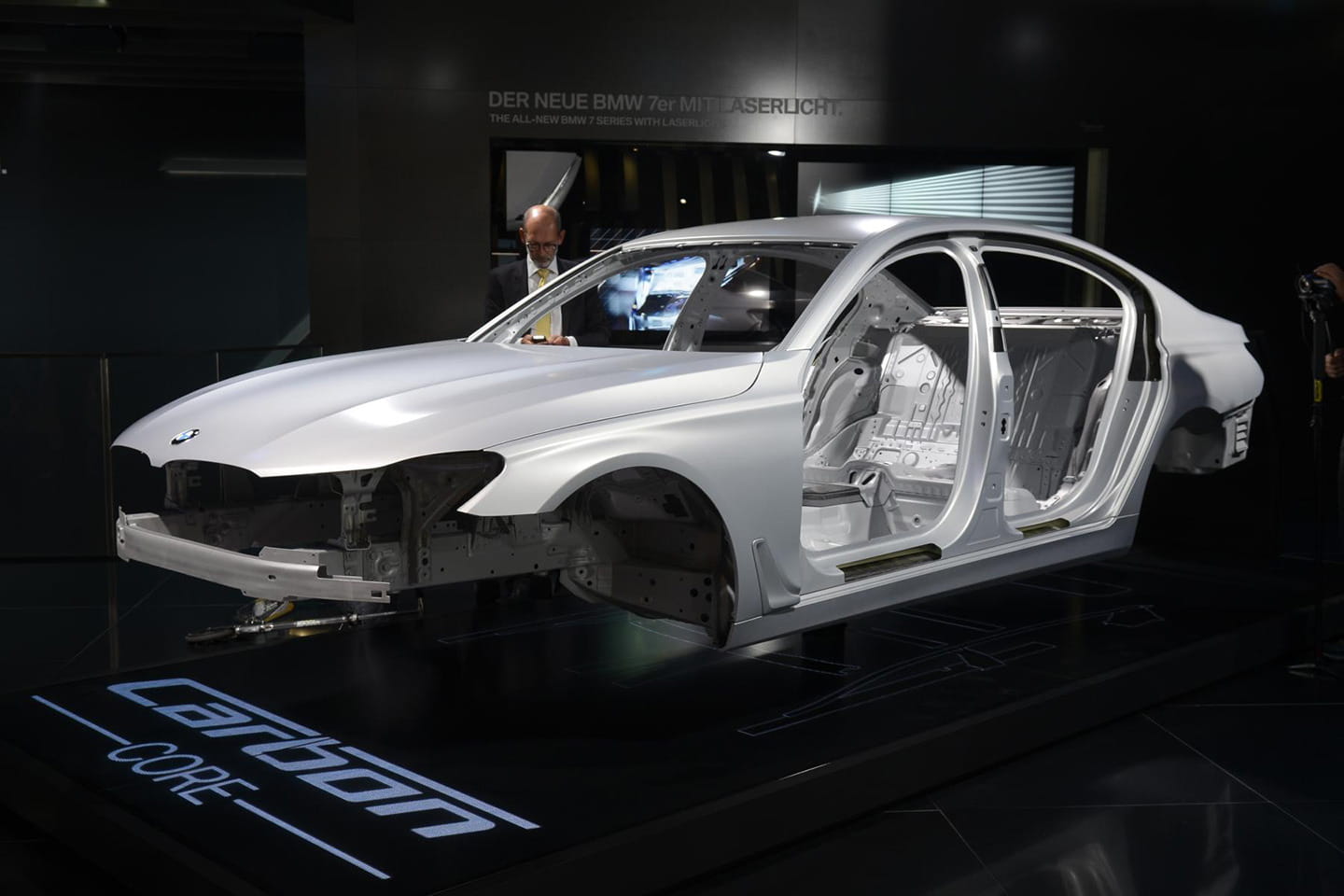 Así se presenta el nuevo BMW Serie 7, o mejor dicho, su carrocería desnuda mostrándonos lo que los alemanes han denominado como Carbon Core. Una serie de estructuras que combinan aluminio con núcleo de fibra de carbono.
