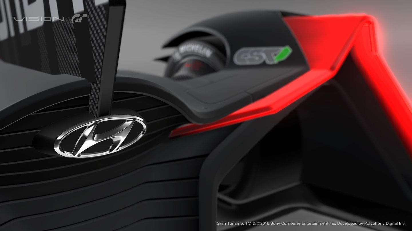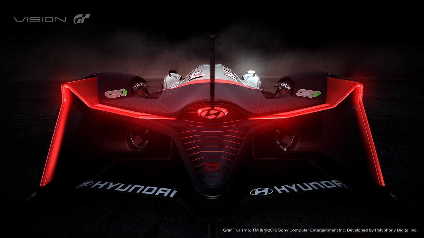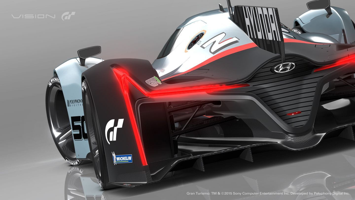 El Hyundai N 2025 Vision Gran Turismo es un prototipo de competición. Sus ruedas están carenadas, en un diseño completamente aerodinámico. Su cola es recta, de igual manera que lo es la zaga de los Porsche 919 Spyder que han vencido en las 24 Horas de Le Mans del presente año. Las ruedas están carenadas de forma independiente y el trabajo aerodinámico revela la posible forma que tendrán los coches de competición del futuro. Eso sí, es tan bajo que posiblemente está a 5 mm del suelo: esperamos que no haya irregularidades en el firme.