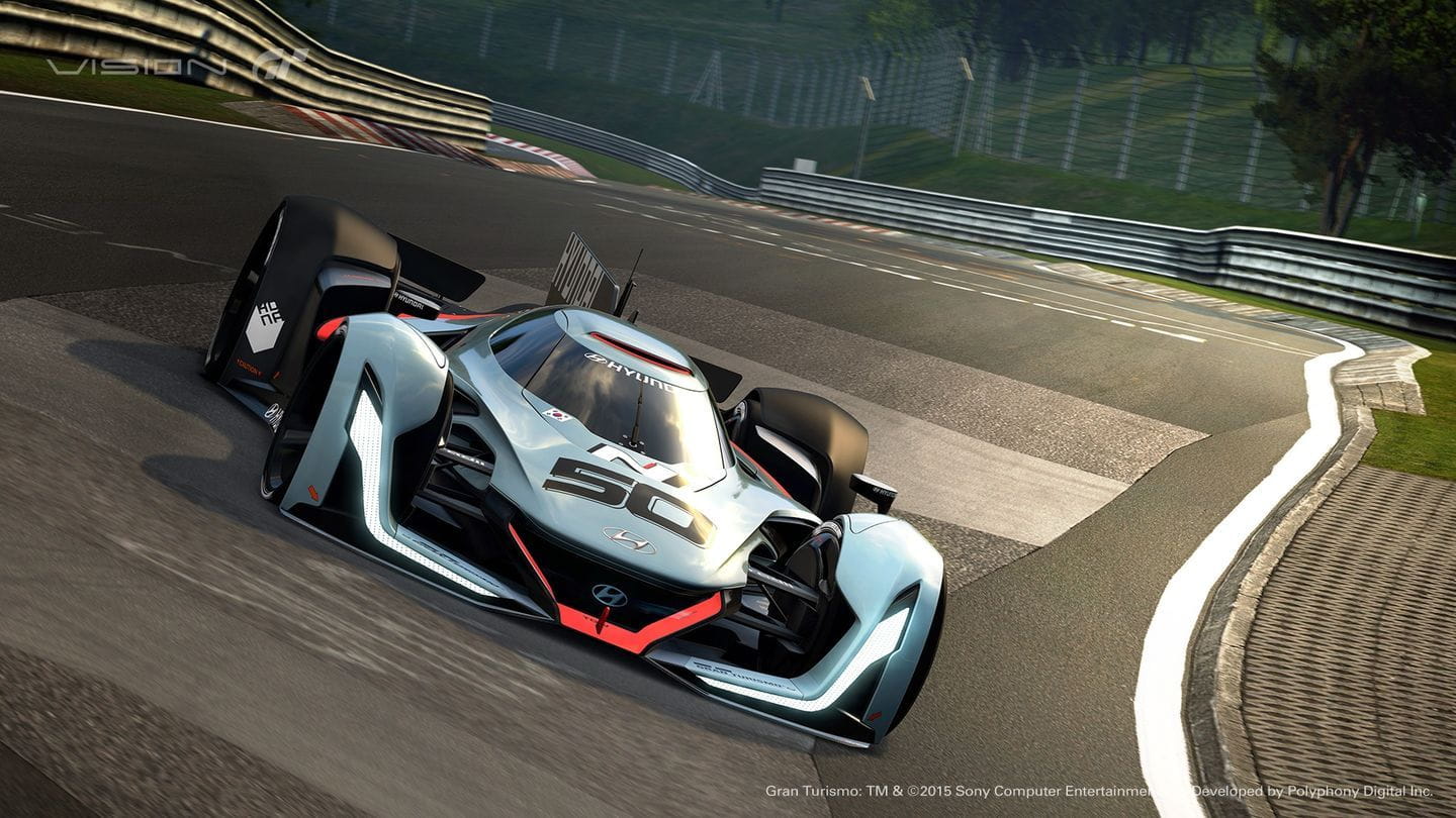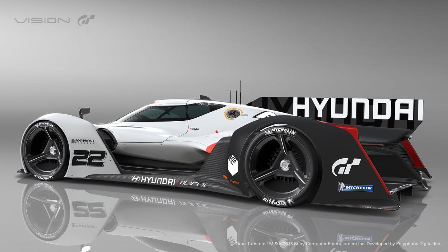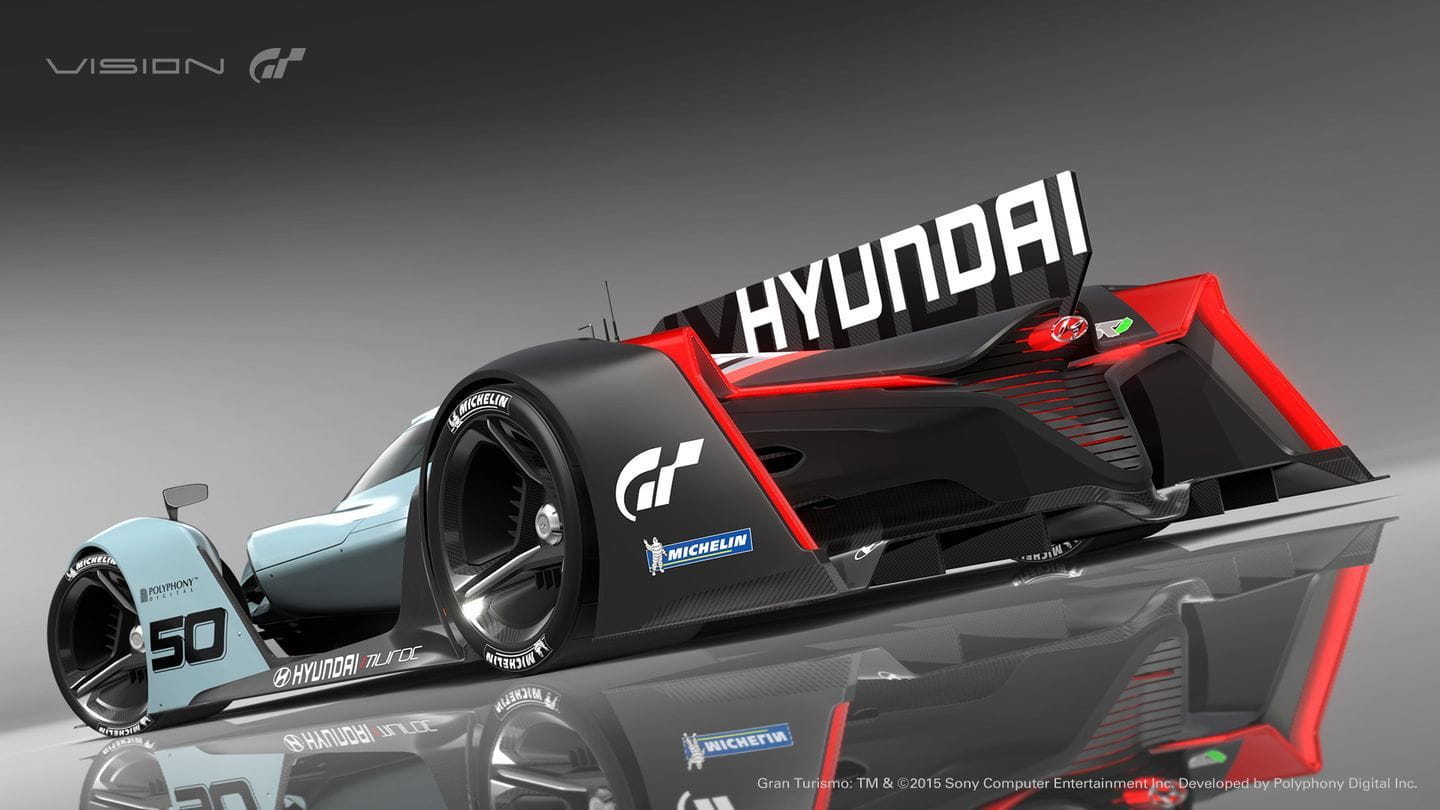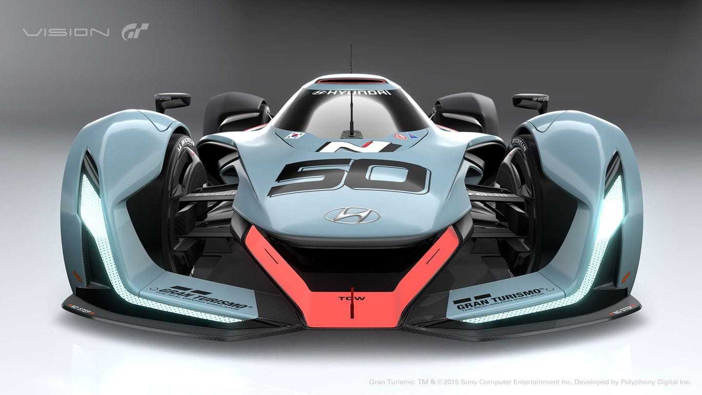 El Hyundai N 2025 Vision Gran Turismo es un prototipo de competición. Sus ruedas están carenadas, en un diseño completamente aerodinámico. Su cola es recta, de igual manera que lo es la zaga de los Porsche 919 Spyder que han vencido en las 24 Horas de Le Mans del presente año. Las ruedas están carenadas de forma independiente y el trabajo aerodinámico revela la posible forma que tendrán los coches de competición del futuro. Eso sí, es tan bajo que posiblemente está a 5 mm del suelo: esperamos que no haya irregularidades en el firme.