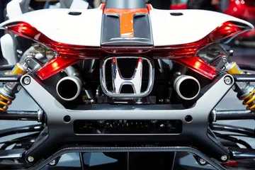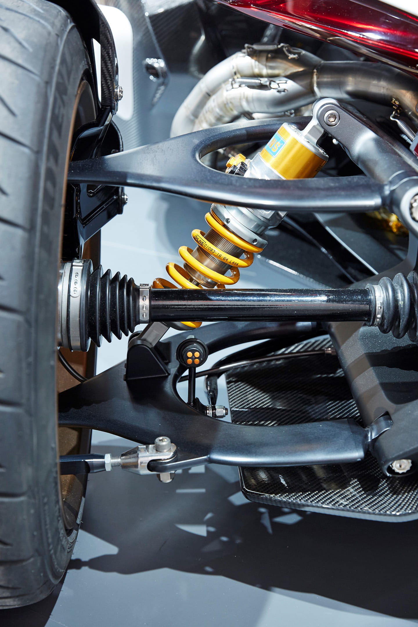 2. Un motor de MotoGP. Otra de las claves de este vehículo la tenemos en el uso del motor de la RC213, un motor prácticamente de competición. Se trata de un V-4 de 999 cc, que desarrolla 215 CV de potencia a 13.000 rpm y corta en torno a las 14.000 rpm. Una auténtica bestialidad, no tanto por su potencia (que es elevadísima para una motocicleta), sino sobre todo por el régimen de revoluciones que alcanza. Una muestra más de que la combinación del corazón de una motocicleta y la conducción de un vehículo de cuatro ruedas es un acierto, al menos cuando de lo que se trata es de crear una bestia de circuito como esta.