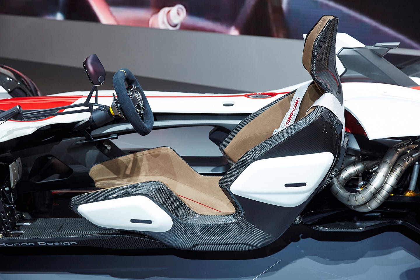 4. Máximo contacto con la carretera. Nunca antes, el conductor de un deportivo ultraligero podría haber estado tan cerca de la carretera. Esa ha sido otra de las prioridades de Honda, la de acercar aún más la conducción de una MotoGP a un vehículo de cuatro ruedas, haciendo que el asfalto esté prácticamente al alcance de la mano del piloto. La sensación de velocidad de este prototipo ha de ser increíble.