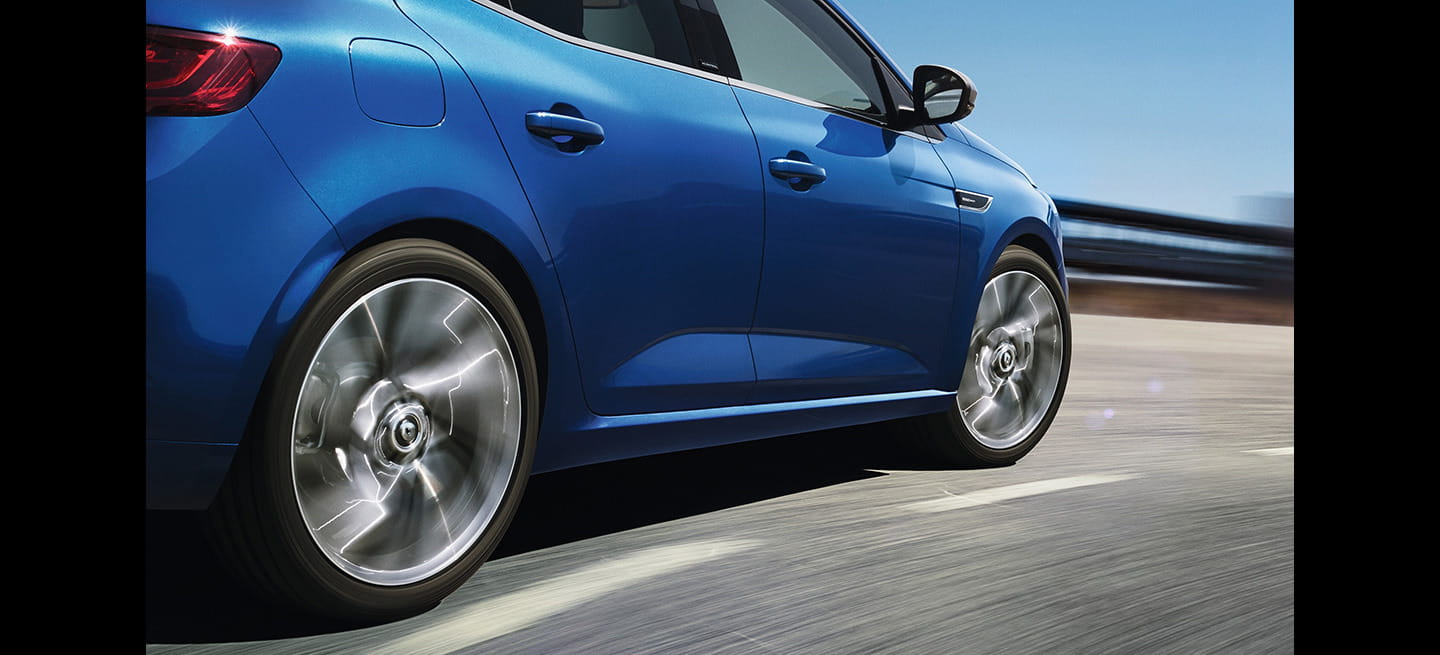 El giro de las ruedas traseras puede ayudarnos en dos tipos de situaciones. La más habitual es la de las maniobras a baja velocidad, por ejemplo desplazándonos por lugares estrechos, o aparcando el coche. En esta situación, las ruedas traseras giran en la dirección contraria a las delanteras. De manera que el radio de giro del coche se reduce significativamente, facilitándonos esas maniobras. Así como requeriremos menos giro de volante, para realizar una misma maniobra de giro, que cualquier otro Mégane sin esta tecnología.