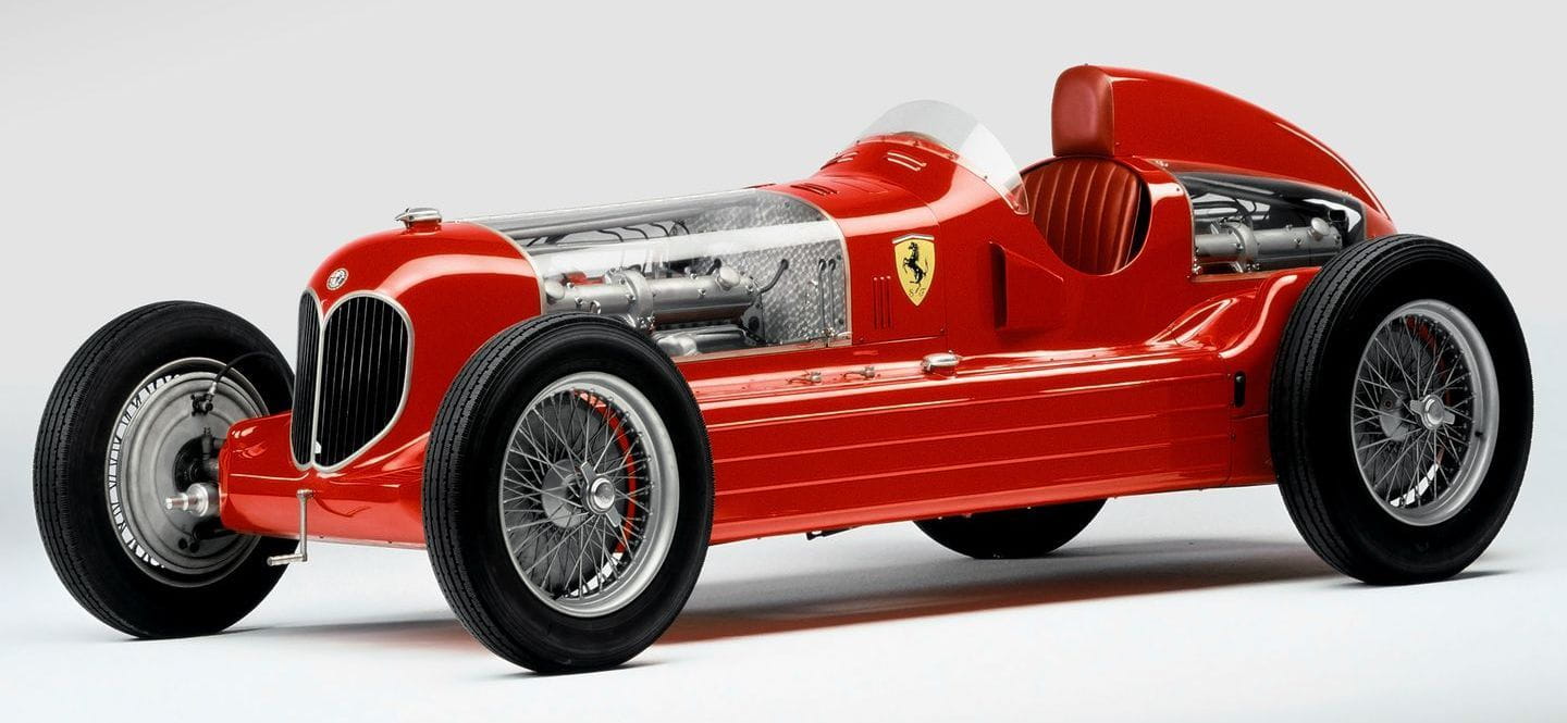 Enzo Ferrari y su ingeniero jefe – el gran Luigi Bazzi – emprendieron un proyecto sin igual junto a 30 de los mejores ingenieros de Italia. Partiendo de la base de un Alfa Romeo 8C Tipo P3, crearon una bestia movida por dos motores de ocho cilindros en línea, sobrealimentados. La idea era crear una bestia de 16 cilindros capaz de competir con lo mejor de Alemania, las rapidísimas flechas de plata de Auto Union y Mercedes. Se comenzó por alargar la batalla del 8C hasta los 2.800 mm, para una longitud total de 4,20 metros.