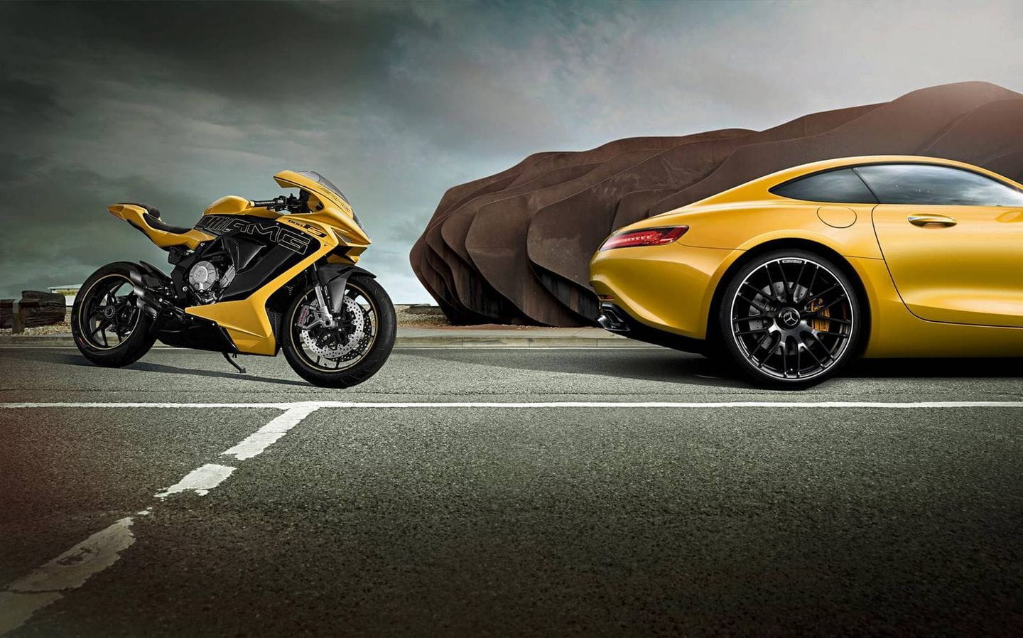 ¿Tienes un Mercedes-AMG GT y te gustan las motos? Aparte de ser un afortunado, estás de enhorabuena. Porque MV Agusta acaba de lanzar una edición especial de su fantástica F3 800, ideada como complemento ideal para el Mercedes-AMG GT. El motivo de esta inusual colaboración entre un fabricante italiano de exóticas motos deportivas y AMG es que Daimler compró en 2014 el 25% de las acciones de MV Agusta. Y en Italia quieren que su nuevo padrino alemán esté contento, así que han decidido ensalzar un poco su pedigrí deportivo.