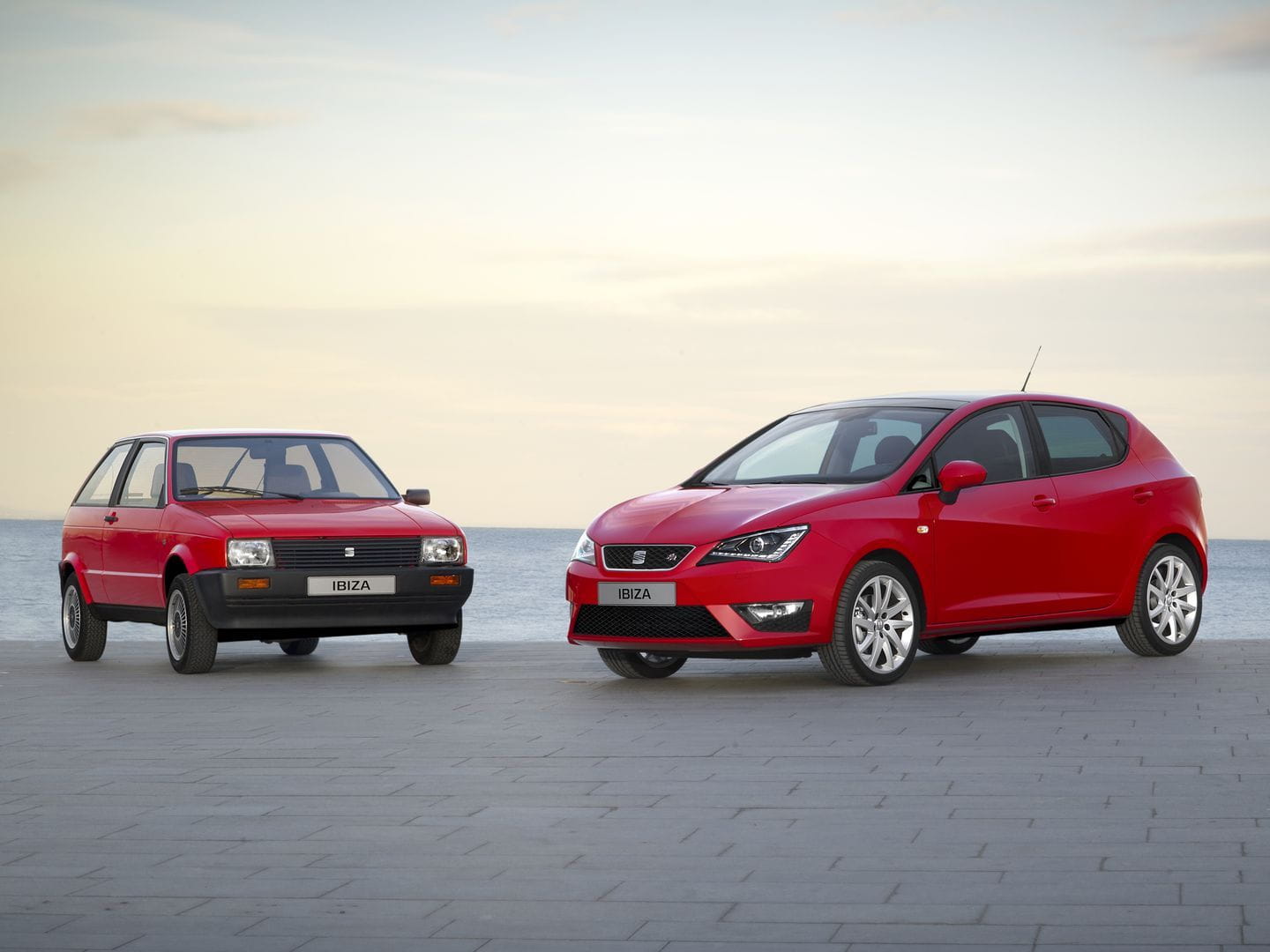 Y llegamos a uno de los coches españoles por excelencia, nuestro querido SEAT Ibiza. Un coche que aunque parezca mentira, fue lanzado hace ya más de 30 años. Y puede decirse que es uno de los coches que más ha hecho por la supervivencia de SEAT – y uno de los que mostró el potencial de la empresa a Volkswagen, que la terminaría comprando. Aunque era relativamente grande, el primer Ibiza es pequeño junto al actual Ibiza.