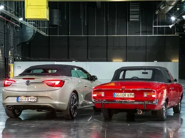El Opel Rekord Cabriolet fue un exclusivo cabrio del que sólo 50 unidades fueron producidad por un carrocero externo, basado en la carrocería coupé del popular Opel Rekord C. Un cabrio grande, que no contaba con una contrapartida moderna en Opel hasta la llegada del Cascada hace poco más de un año. Y a pesar de estar basado entonces en una berlina grande, parece incluso pequeño junto al cabrio derivado del Astra.