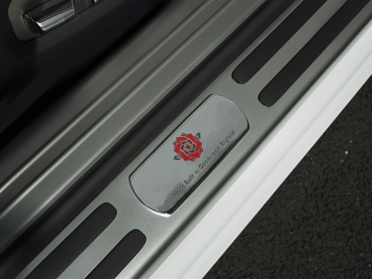 En los vanos de las puertas y en los asientos, así como en las aletas laterales del coche está presente una rosa roja. Esta rosa es el símbolo de la Rugby School de Warwickshire, una histórica institución británica del deporte. La rosa roja estaba bordada en cada una de las camisas con las que se jugaba a rugby. Realmente era el emblema personal de la reina Isabel I, que la escuela bordaba en las prendas deportivas con permiso de su majestad. Un ligero vinilo verde oscuro recorre la cintura lateral del coche.