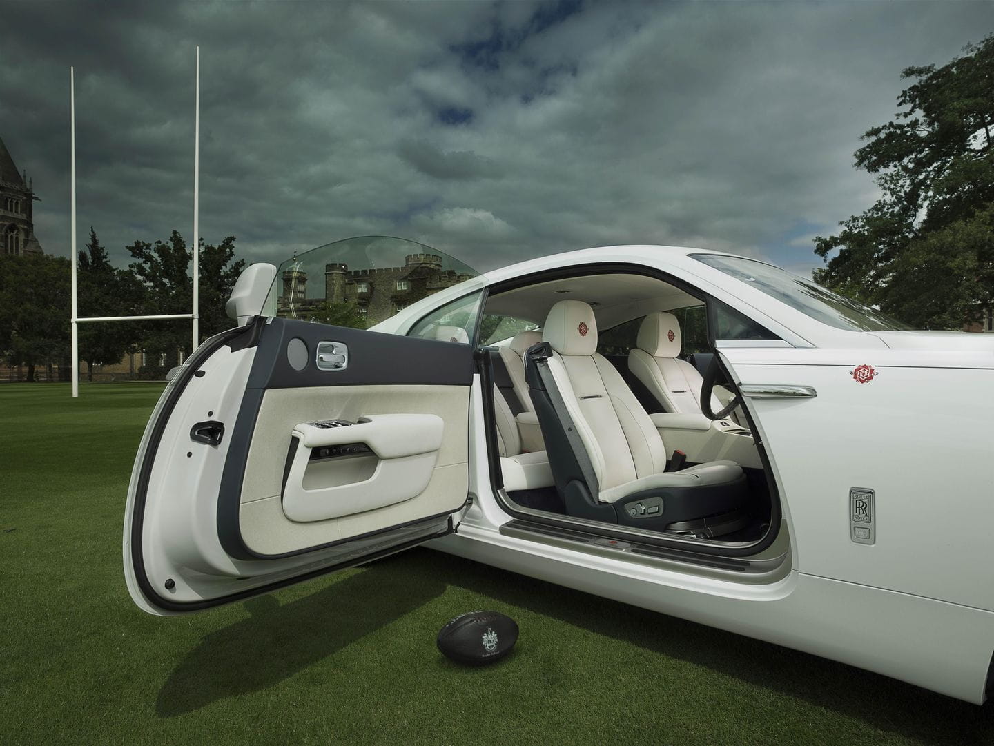 Ya sabéis que a los británicos nadie les gana en patriotismo cuando se ponen en plan celebración. Cuando William Webb Ellis «alteró» las reglas del fútbol y comenzó a correr con la pelota en sus manos nadie esperaba que el rugby se fuera a convertir en uno de los deportes de equipo más apasionantes y seguidos en medio mundo – al menos en los países de la Commonwealth. En Rolls-Royce han decidido personalizar este Wraith en homenaje al rugby. Comienza con un tono English White para su carrocería, color muy asociado a la ropa de rugby.