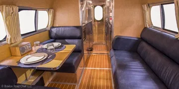 La Road Chief cuenta con dos camas, una zona común con un sillón y una elegante mesita, así como una cocina acabada en acero inoxidable. No tiene ducha, sólo un baño con agua fría/caliente, con un acumulador de agua alimentado por un panel solar. El sillón de la zona común puede transformarse en una cama adicional, y tiene un frigorífico de gran capacidad en la cocina. Una auténtica belleza cuyo precio es prohibitivo. Arranca en 110.000 dólares, y la versión con porche cuesta nada menos que 130.000 dólares.