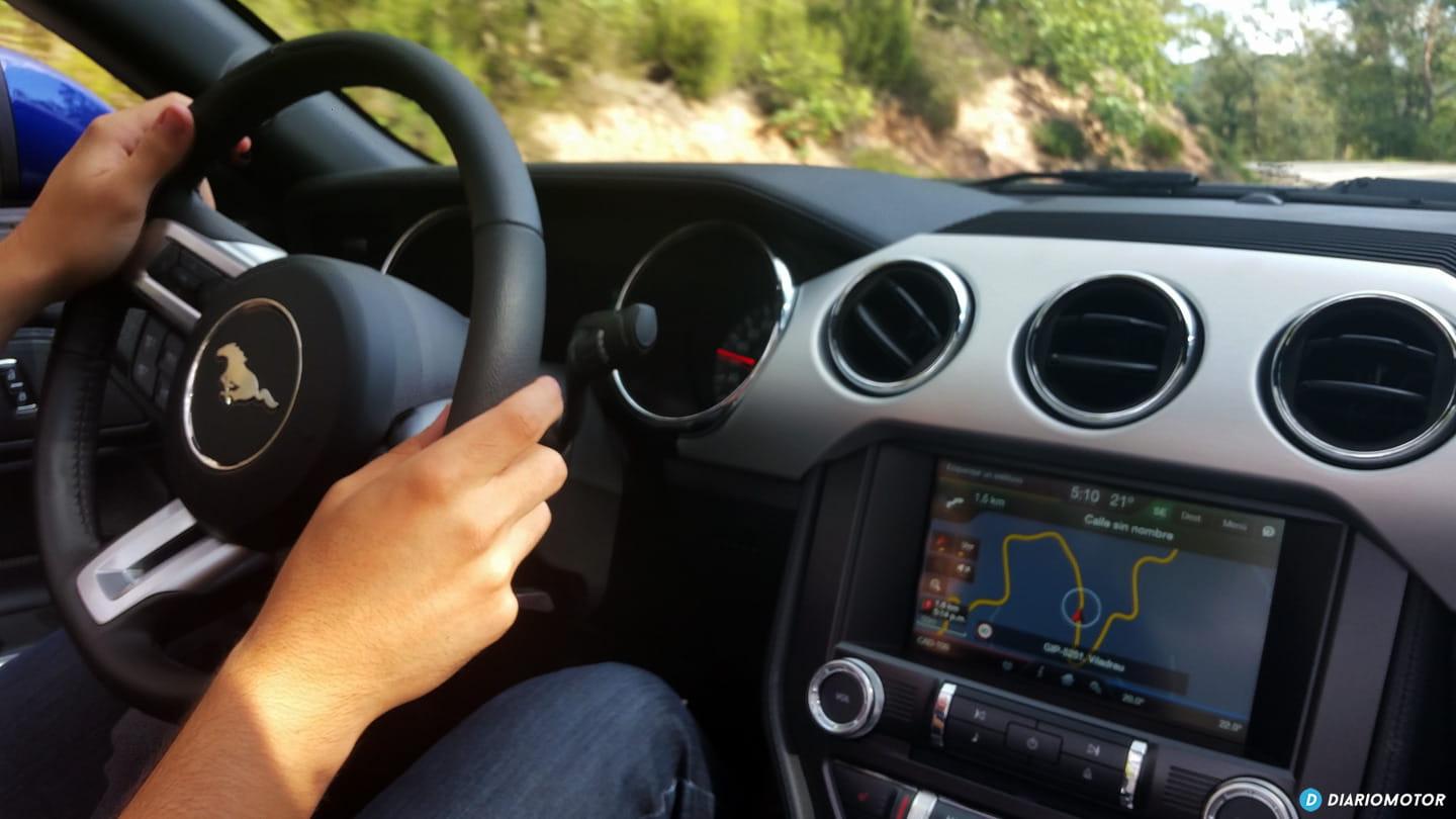 Obviamente, cuando te sientas en un coche con el que has soñado toda la vida conducir, hay algo llamado escalofrío que recorre todo tu cuerpo. Al contrario que con el Focus ST, siempre me había imaginado que al entrar en un Mustang y arrancar su bestial V8 por primera vez, en sistema de sonido se reproduciría automáticamente el himno estadounidense y que caza sobrevolaría mi cabeza desplegando una gran bandera con las barras y estrellas. No fue así, pero os puedo asegurar que tuve unos cuantos días el vello erizado.