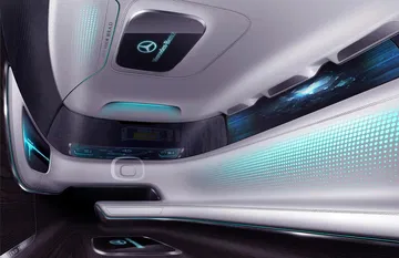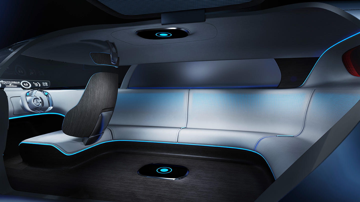 Pero lo más importante, y el hecho diferencial del coche autónomo según esta y otras visiones de Mercedes-Benz, lo tendremos en cómo interactuarán los pasajeros en un coche que no necesite conductor. De ahí ese diseño de habitáculo con asientos a modo de sala VIP, con un gran sillón que surca todo el habitáculo para que los pasajeros interactúen y charlen.