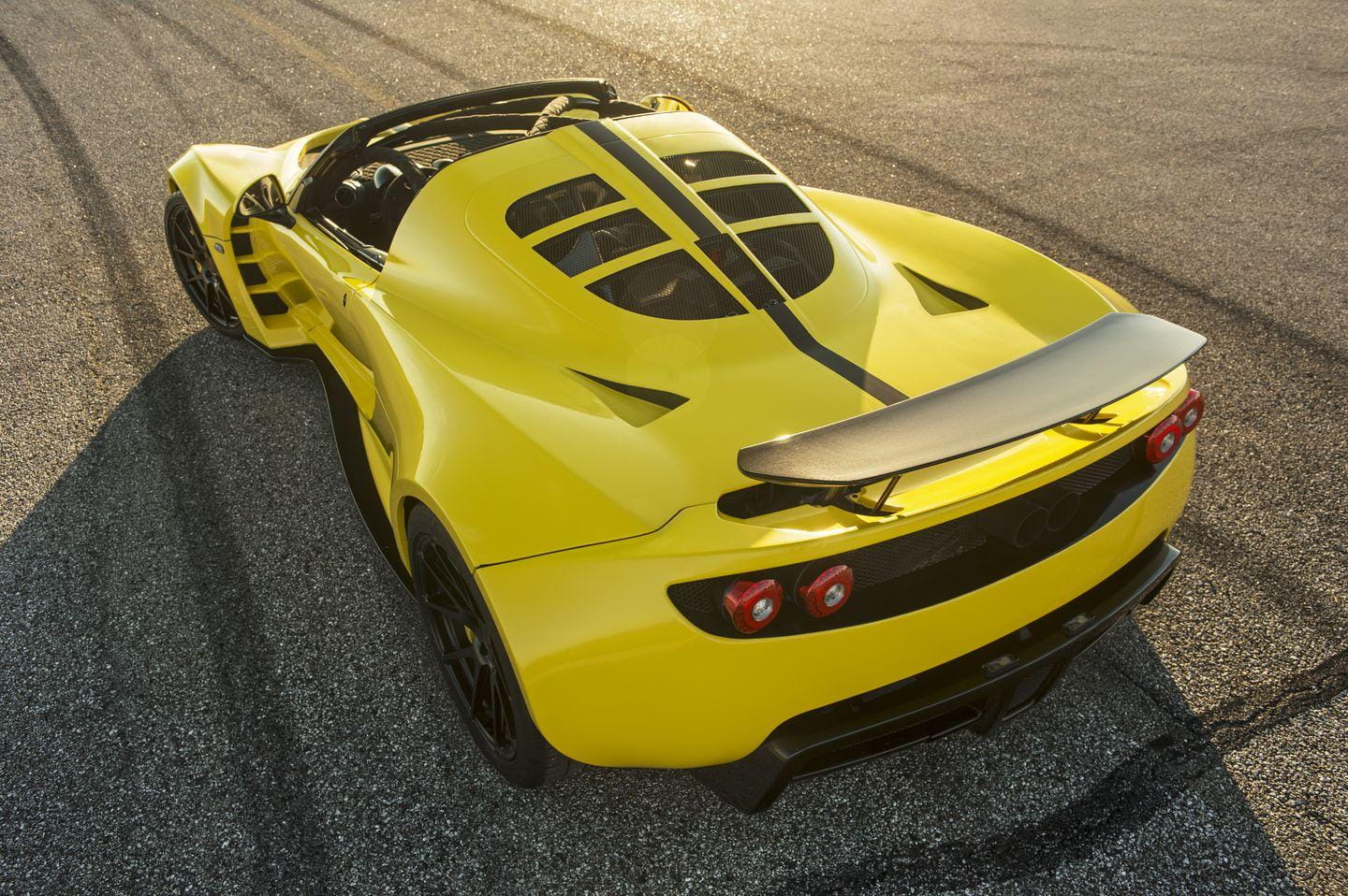 A Hennessey se les ha ido de las manos, definitivamente. La única modificación que han practicado en este Lotus Elise anabolizado es incrementar la potencia de su motor, un 7.0 LS7 V8 de origen General Motors. Un enorme motor de aluminio que ahora es compatible con bioetanol E85. El mayor octanaje del bioetanol y varios ajustes que han permitido incrementar la presión de soplado de sus turbocompresores han llevado su potencia hasta unos tremendos 1.451 CV. Un incremento de 207 CV sobre sus 1.244 CV anteriores.