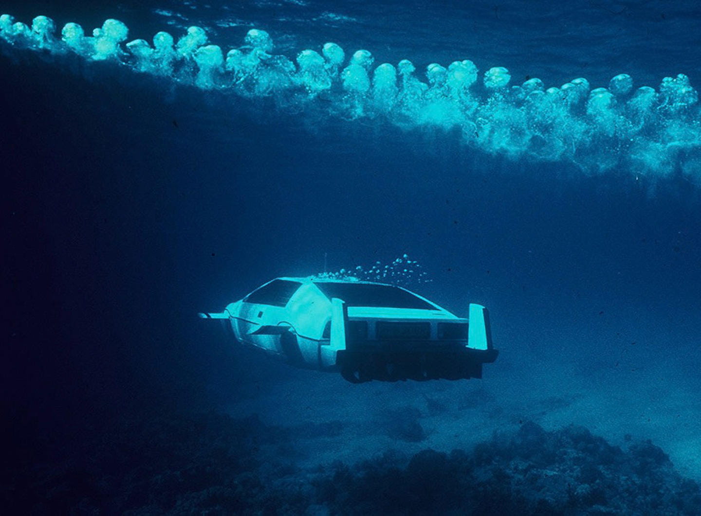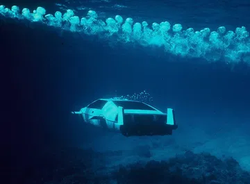 15. Coche submarino con lanzador de minas, torpedos y misiles agua-aire. Otro de mis favoritos es el Lotus submarino de la entrega The Spy Who Loved Me, capaz no solo de sumergirse, sino también de soltar minas, lanzar torpedos, e incluso misiles agua-aire, capaces de derribar helicópteros. El Lotus utilizado en la película, por cierto, existe, y se subastó hace dos años.