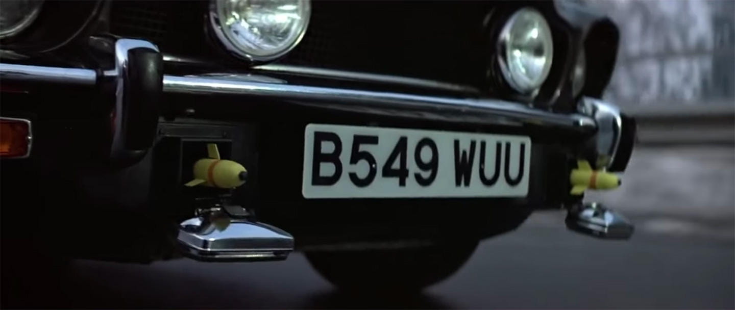 2. Intercambiador de matrículas. Si lo hiciera cualquier hijo de vecino sería ilegal, muy ilegal. Pero 007 tiene licencia para cambiar automáticamente la matrícula de su coche. ¿Radares, a mí?