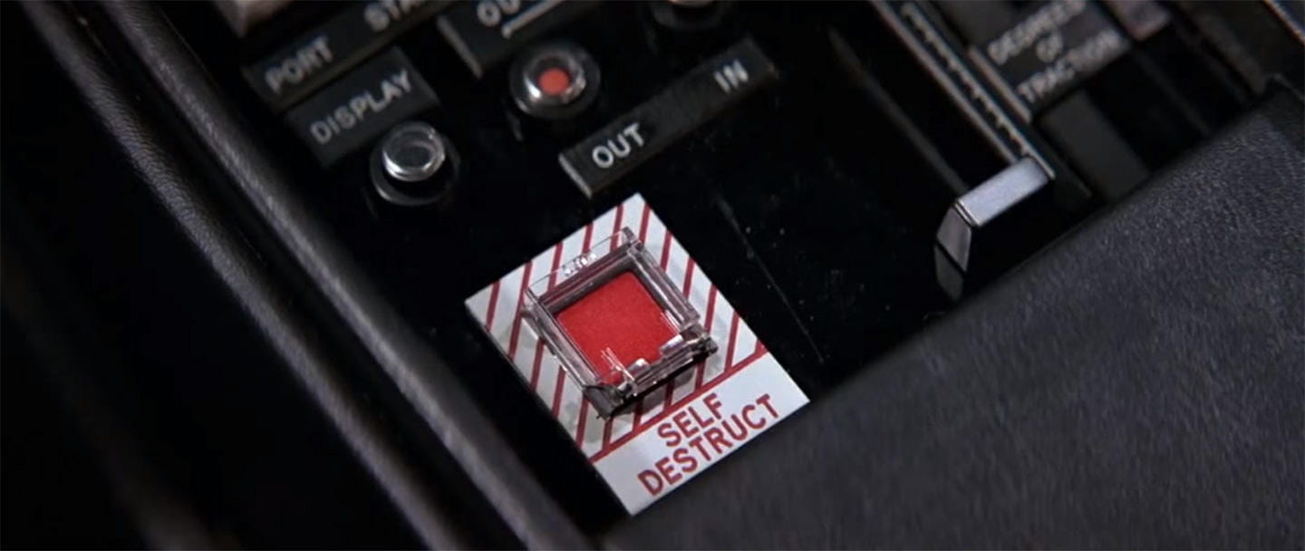 17. Botón de autodestrucción. Quizás esa experiencia llevase a Q a instalar un sistema de autodestrucción controlable, que pudiera ser manipulado por el propio Bond.