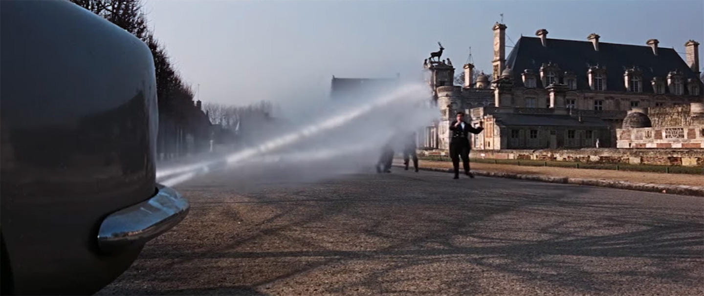 5. Aspersores de líquido deslizante. A la hora de esquivar a los perseguidores, otra idea digna de Mario Kart y sus plátanos pasaba por lanzar un líquido que convertía el asfalto en una pista de patinajes.