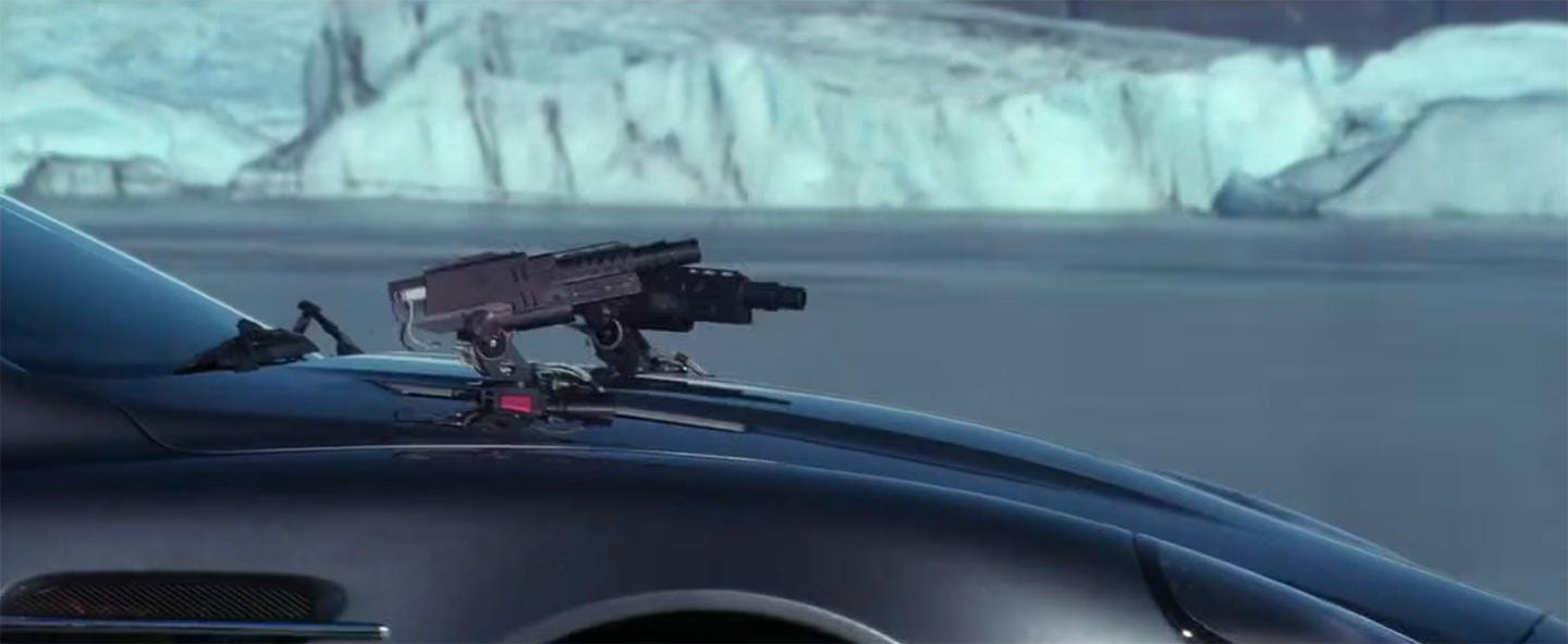 12. Ametralladora. Si por algo se han caracterizado también los coches Bond ha sido precisamente por su arsenal de armamento. Las ametralladoras integradas en el coche han sido prácticamente una constante en la saga James Bond.