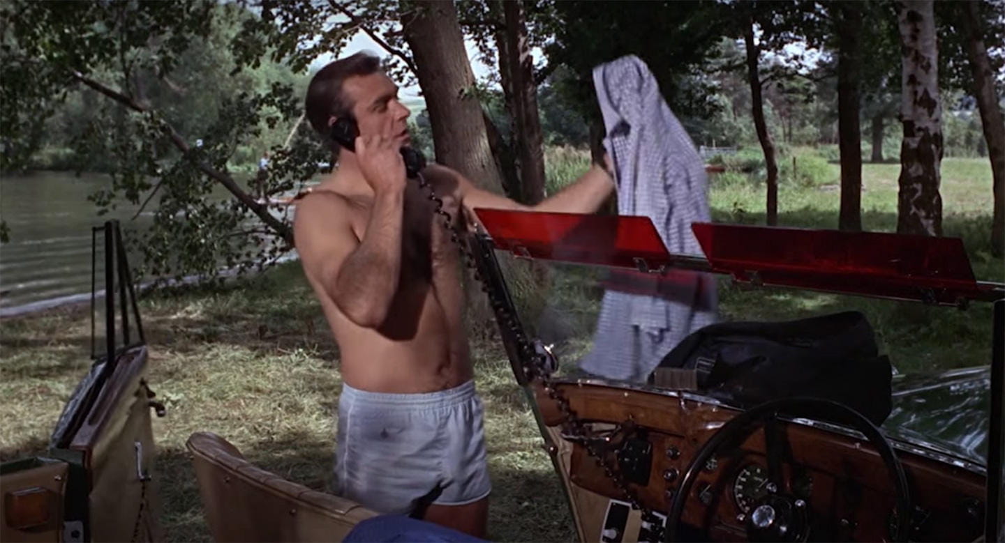 1. Teléfono en el coche. Hoy en día resulta cómico ver a Sean Connery coger el teléfono, con su correspondiente cable enrollado, en un Jeep. Pero en 1962, cuando se estrenó Dr. No, utilizar un teléfono en el coche parecía casi ciencia ficción.