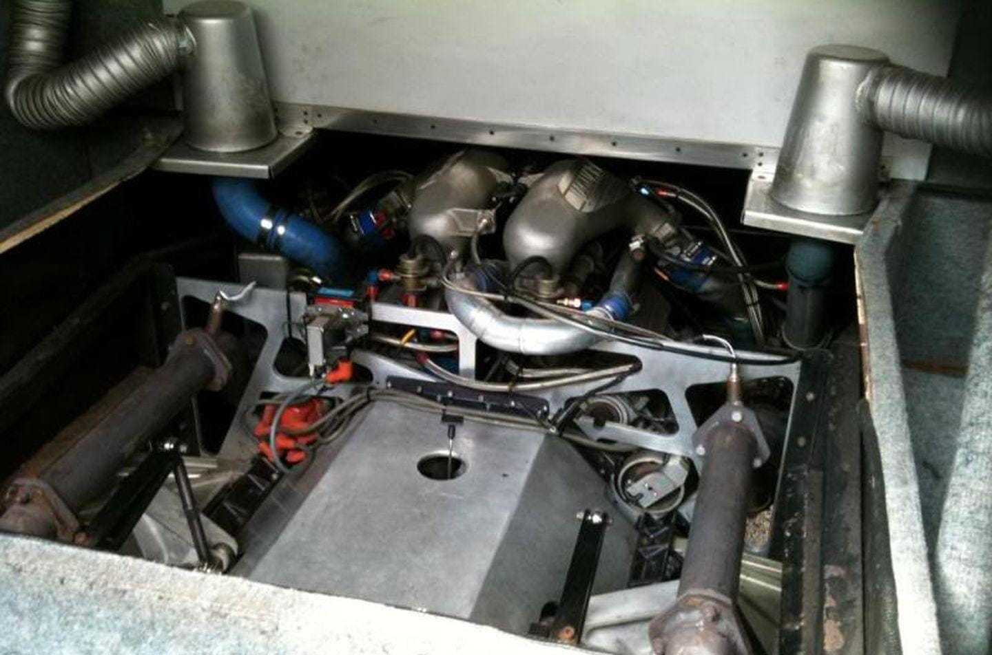 El motor fue conectado a una caja de cambios transaxle, situada sobre eje trasero. La refrigeración era cortesía de varios radiadores instalados en torno al motor, mientras que la admisión fue cuidadosamente escondida. Para añadir más confusión al viandante o el competidor celoso, instalaron en el techo unas escaleras y unas barras para que se asumiera que el vehículo tenía un uso comercial. Sólo dos detalles llaman la atención: el primero es la presencia de dos tubos de escape discretos en la zaga. Pasable.