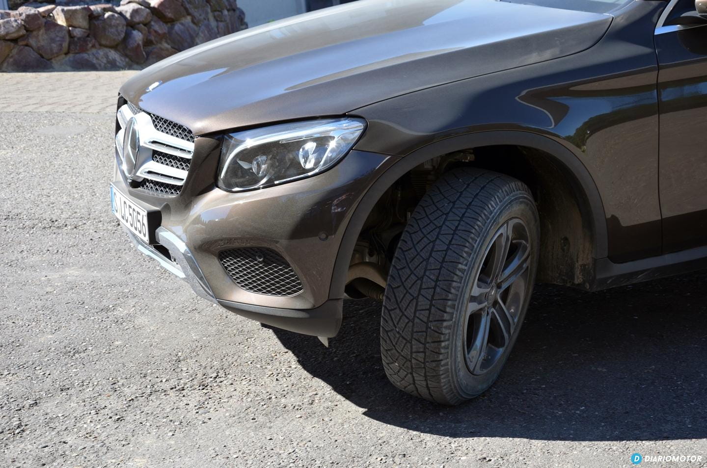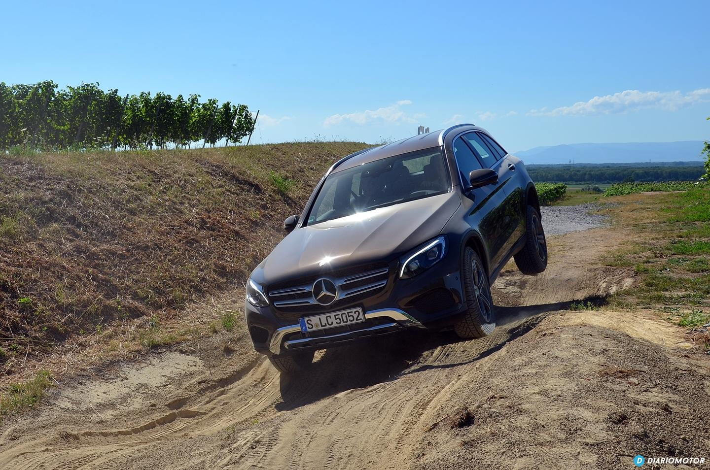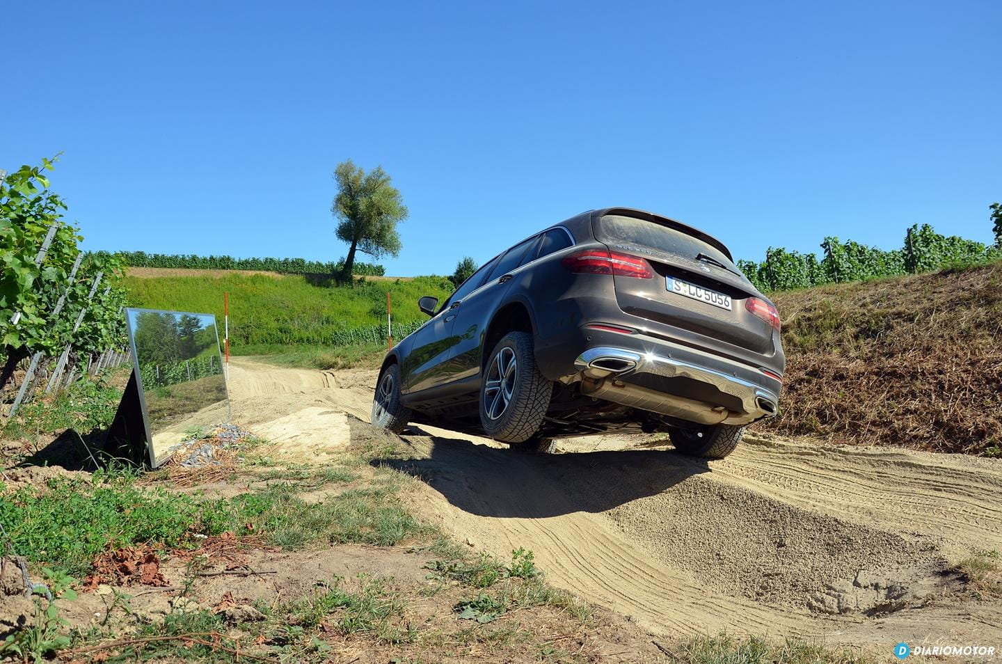 De este modo, nuestra unidad del Mercedes GLC pudo demostrarnos cómo era capaz de abordar pendientes ascendentes de hasta el 70% o descensos de hasta el 50% gracias al asistente para descensos, atacar socavones que nos obligaban a avanzar con apenas dos o tres ruedas y salir airoso de la circulación por diferentes terrenos como arena, barro o grava. Gracias a la instalación del paquete Off-road Engineering package los ángulos admisibles para la conducción todoterreno quedan así: 30,8º (Ataque), 24,8º (Salida) y 19,7 (Ventral).