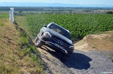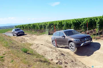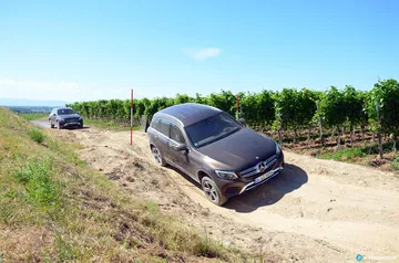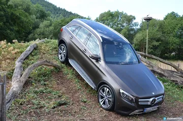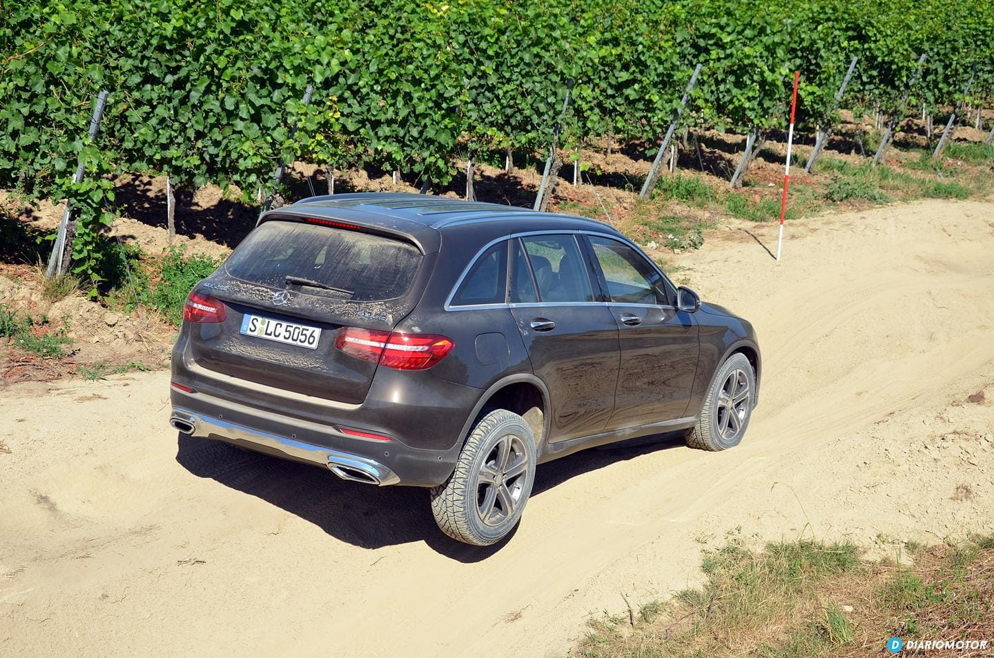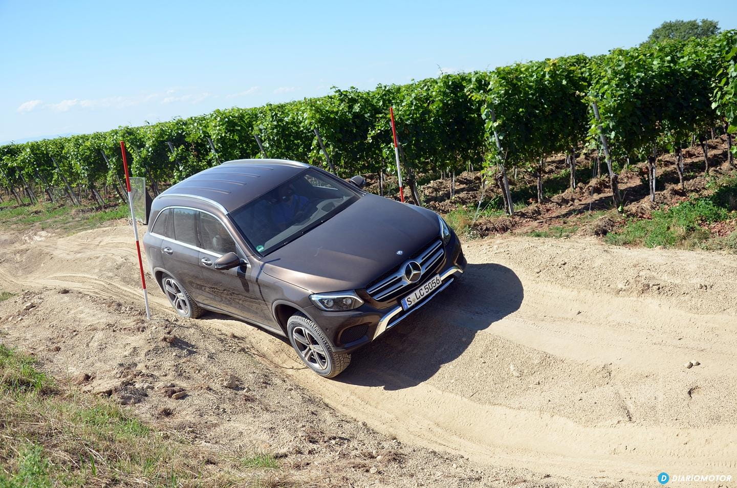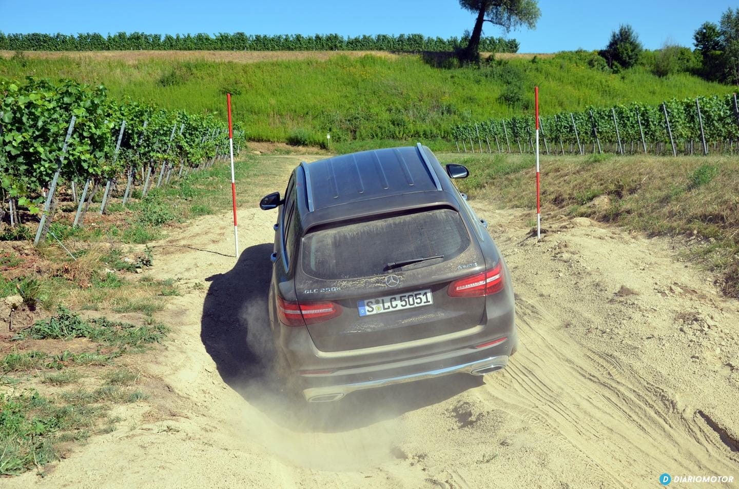 De este modo, nuestra unidad del Mercedes GLC pudo demostrarnos cómo era capaz de abordar pendientes ascendentes de hasta el 70% o descensos de hasta el 50% gracias al asistente para descensos, atacar socavones que nos obligaban a avanzar con apenas dos o tres ruedas y salir airoso de la circulación por diferentes terrenos como arena, barro o grava. Gracias a la instalación del paquete Off-road Engineering package los ángulos admisibles para la conducción todoterreno quedan así: 30,8º (Ataque), 24,8º (Salida) y 19,7 (Ventral).