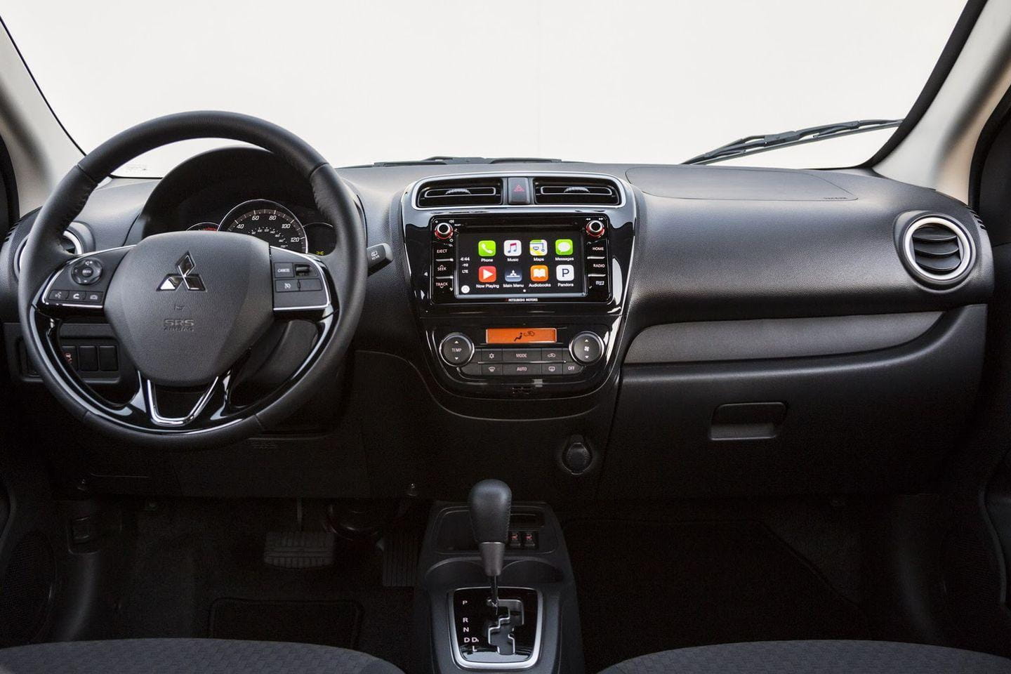 En el interior es donde más se nota el salto de calidad. Antes del lavado de cara, daba la sensación de estar anticuado, de tener demasiados plásticos, con un acabado endeble. Todo ello ha sido solucionado en parte, gracias a un nuevo diseño multifunción para el volante, una instrumentación rediseñada y una consola central modificada. También se incorporan nuevas tapicerías y más opciones al equipamiento del Mirage, una de las cuales es la compatibilidad con Android Auto y Apple Car Play para su sistema de infotainment.
