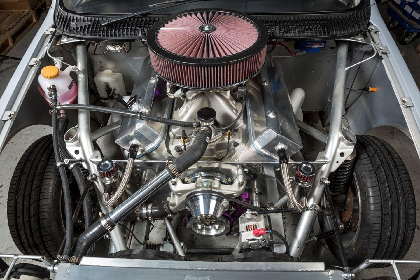 Este motor es capaz de desarrollar unos brutales 1.056 CV de potencia a 7.000 rpm y un par motor máximo cercano a los 1.150 Nm. Una bestial máquina que necesita una transmisión automática TH400 de tres velocidad para pasar esta potencia de forma eficiente al suelo. Actualmente, el coche se encuentra registrado en Reino Unido, y usando neumáticos traseros con dibujo, puede ser conducido en las calles. ¿Os imagináis conducir una bestia así por las calles de nuestro país? Es prácticamente impensable, la verdad.
