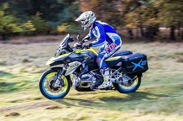 Creedme, es una moto muy pesada y difícil de maniobrar en parado. El motor eléctrico ya merece la pena sólo por ese detalle. El caso es que permite aportar un extra de potencia y motricidad, que se suma a los 125 CV del motor bóxer de 1,2 litros que se sigue encargando de mover la rueda trasera. ¿De dónde obtiene el motor la electricidad? La obtiene de la frenada regenerativa, y la acumula en una pequeña batería situada en el frontal de la moto, debajo del guardabarros frontal. Es relativamente voluminosa.
