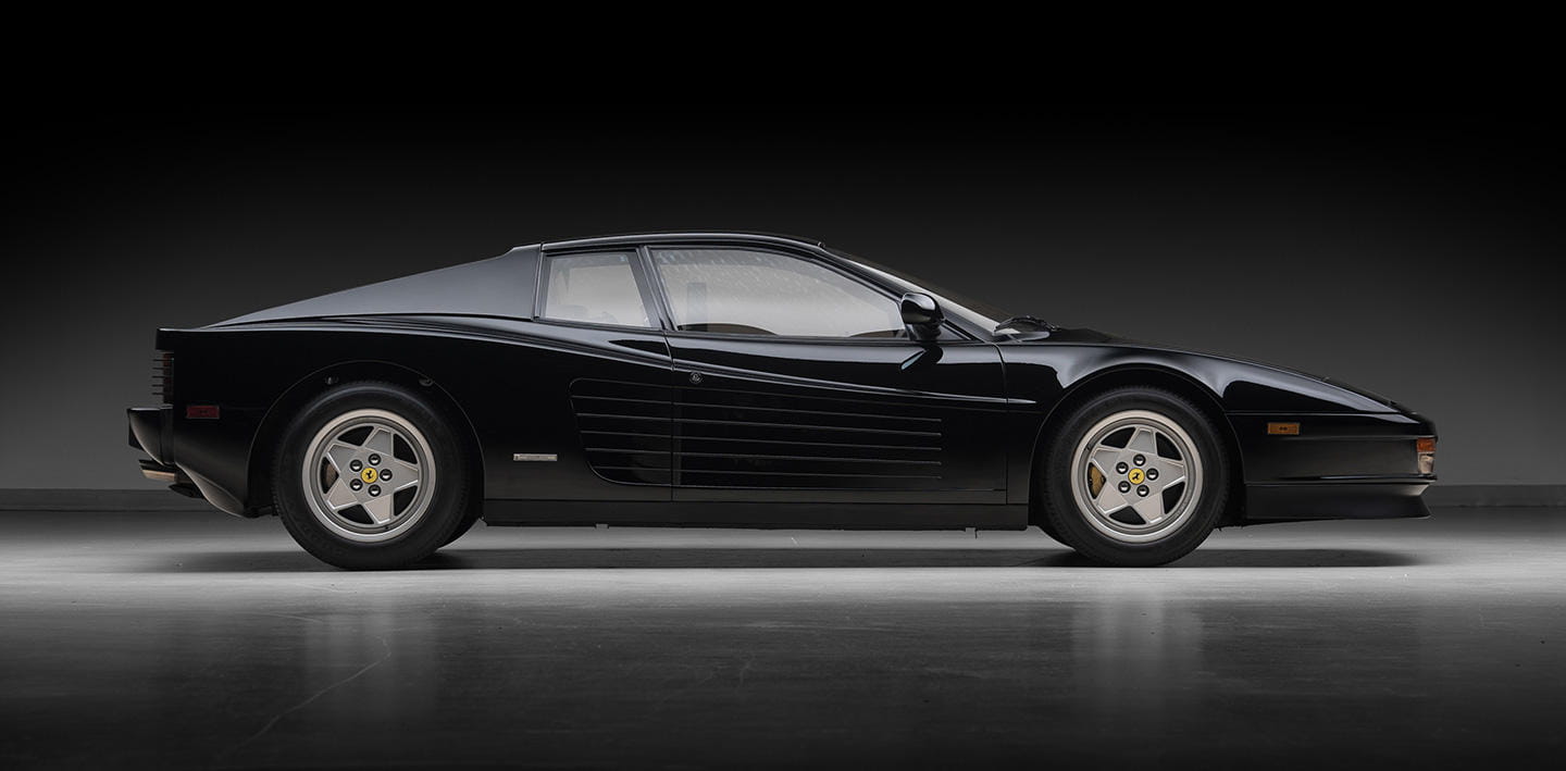 Según RM Auctions y Sothebys, este Testarossa fue adquirido completamente nuevo en 1991 por una dama, y ha permanecido en sus manos hasta ahora. Según parece, su propietaria lo adquirió – entre otras cosas – por el éxito que tuvo el Testarossa con su aparición en Miami Vice. Aunque inicialmente su objetivo era utilizarlo a menudo, tras su adquisición directamente fue aparcado en un garaje, donde permaneció prácticamente hasta nuestros días. Se vende por falta de uso (sic).