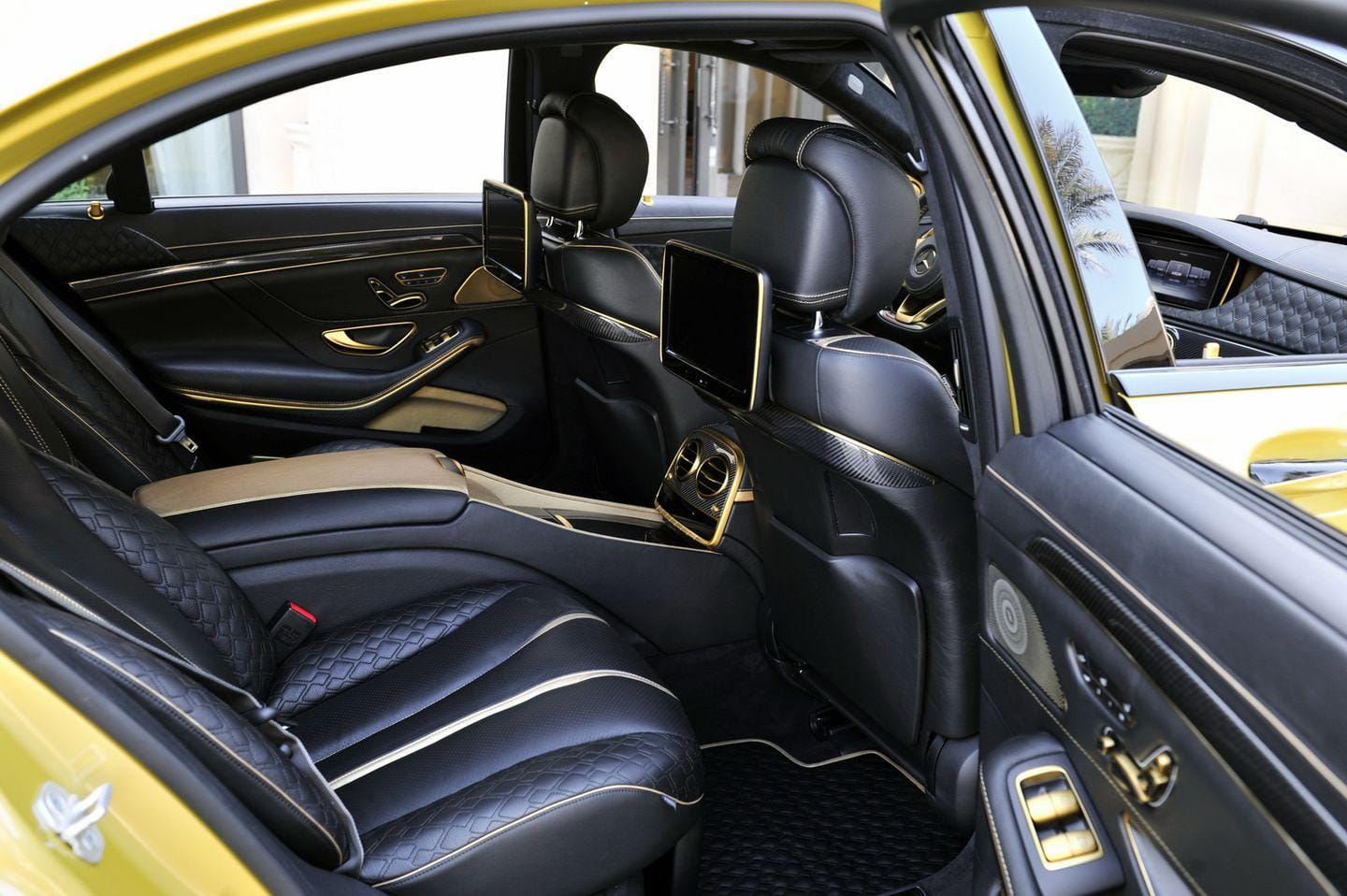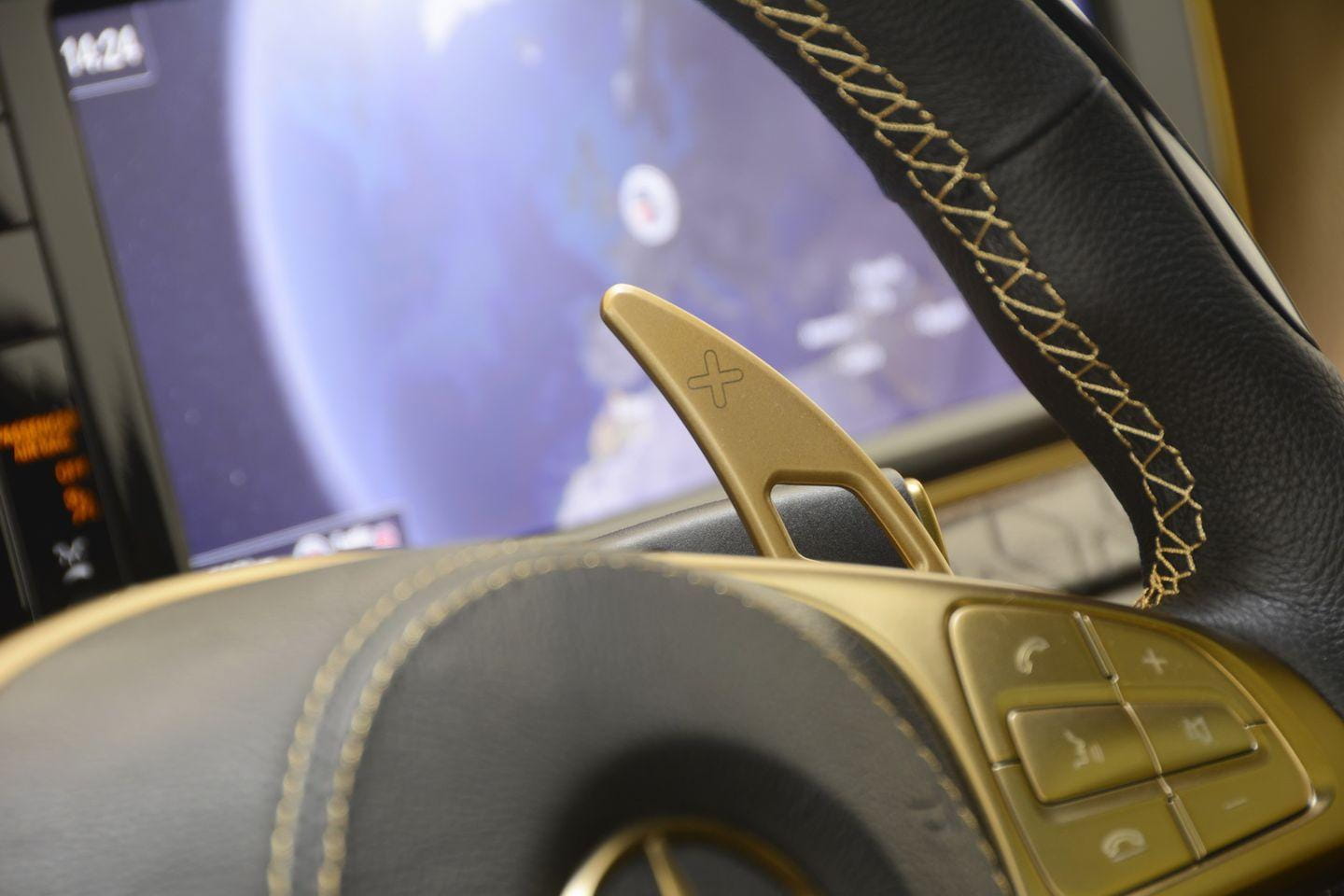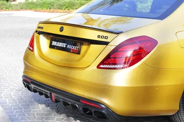 Un kit deportivo similar al que equipan otros Brabus basados en la Clase S. Detalles en fibra de carbono, un difusor o una caladra oscurecida no son demasiado llamativos ante la pintura de color dorado metalizado del exterior del coche. Si pasamos al interior del coche el dorado inunda nuestros sentidos. Brabus afirma que han modificado o retapizado hasta 300 piezas del interior del coche para convertir al Brabus Rocket 900 Desert Gold Edition en una máquina única. Las fotos realmente hablan por sí mismas.