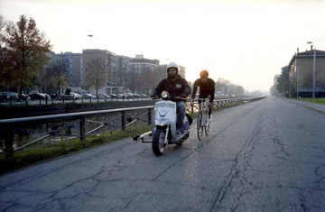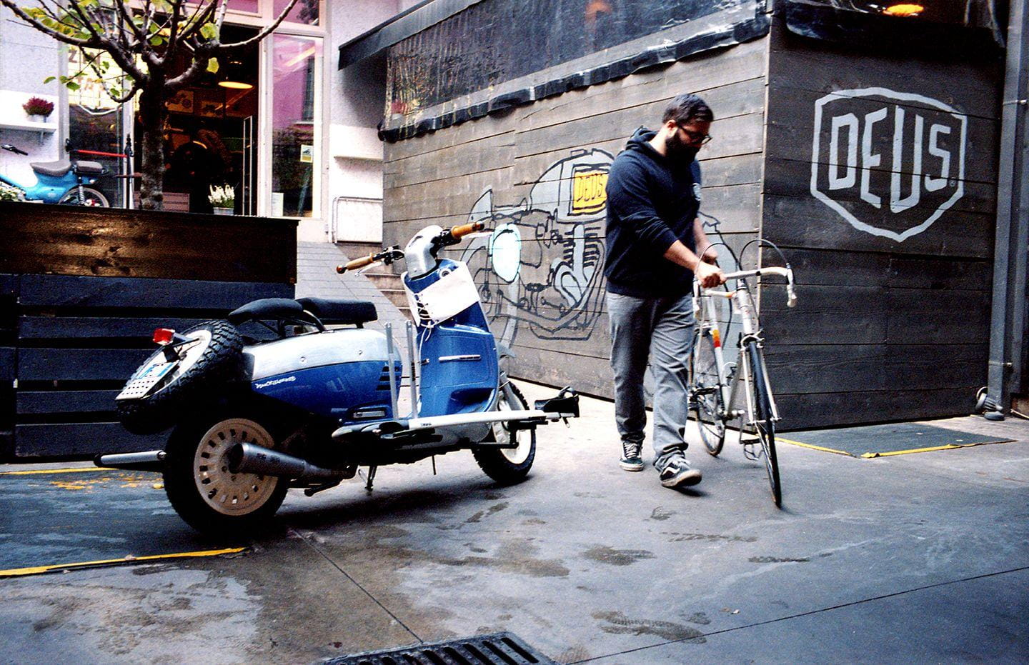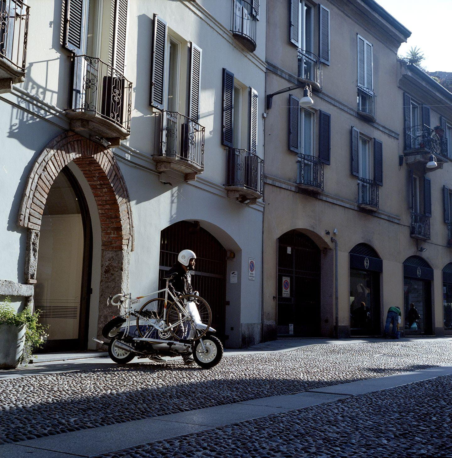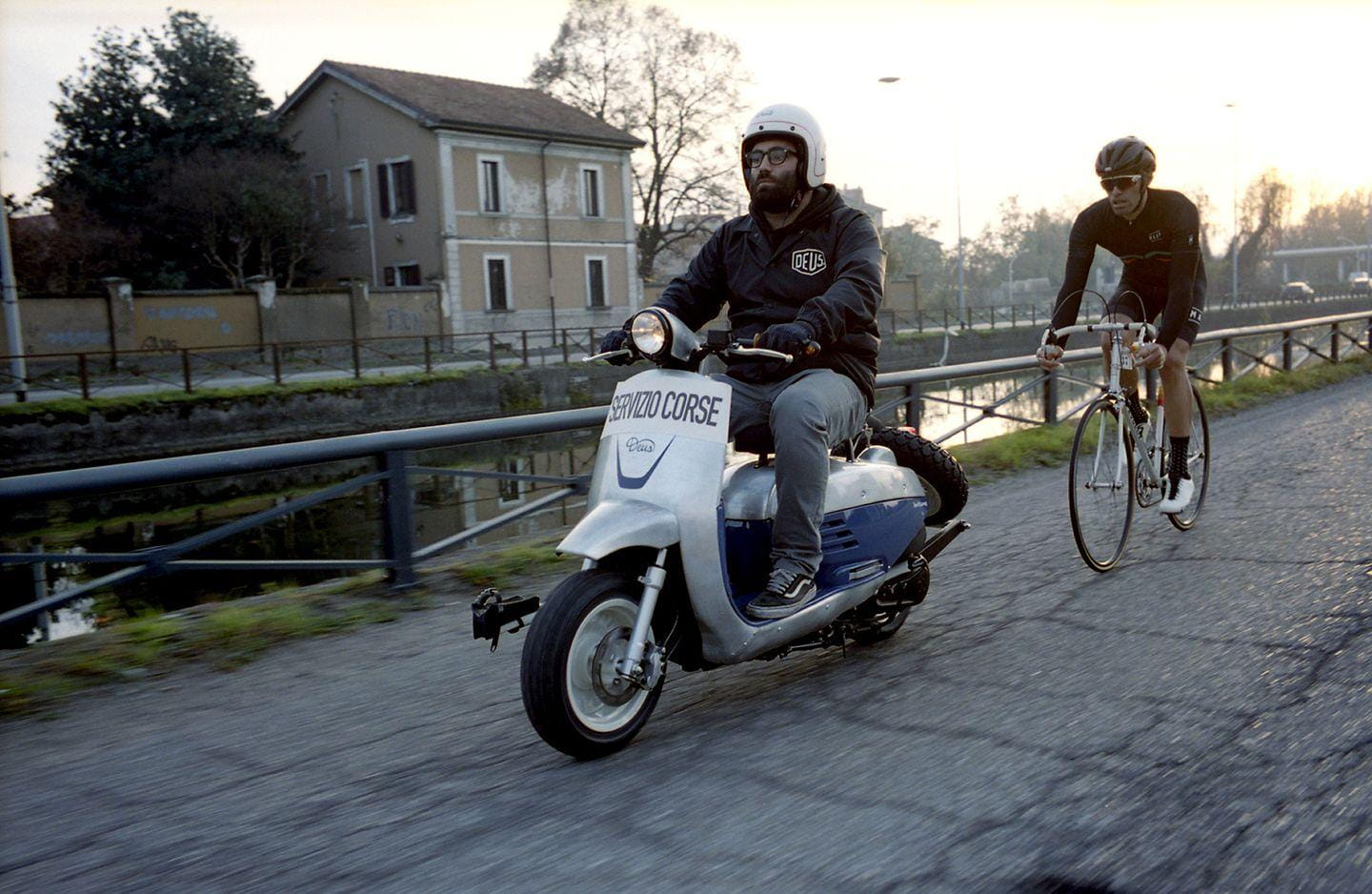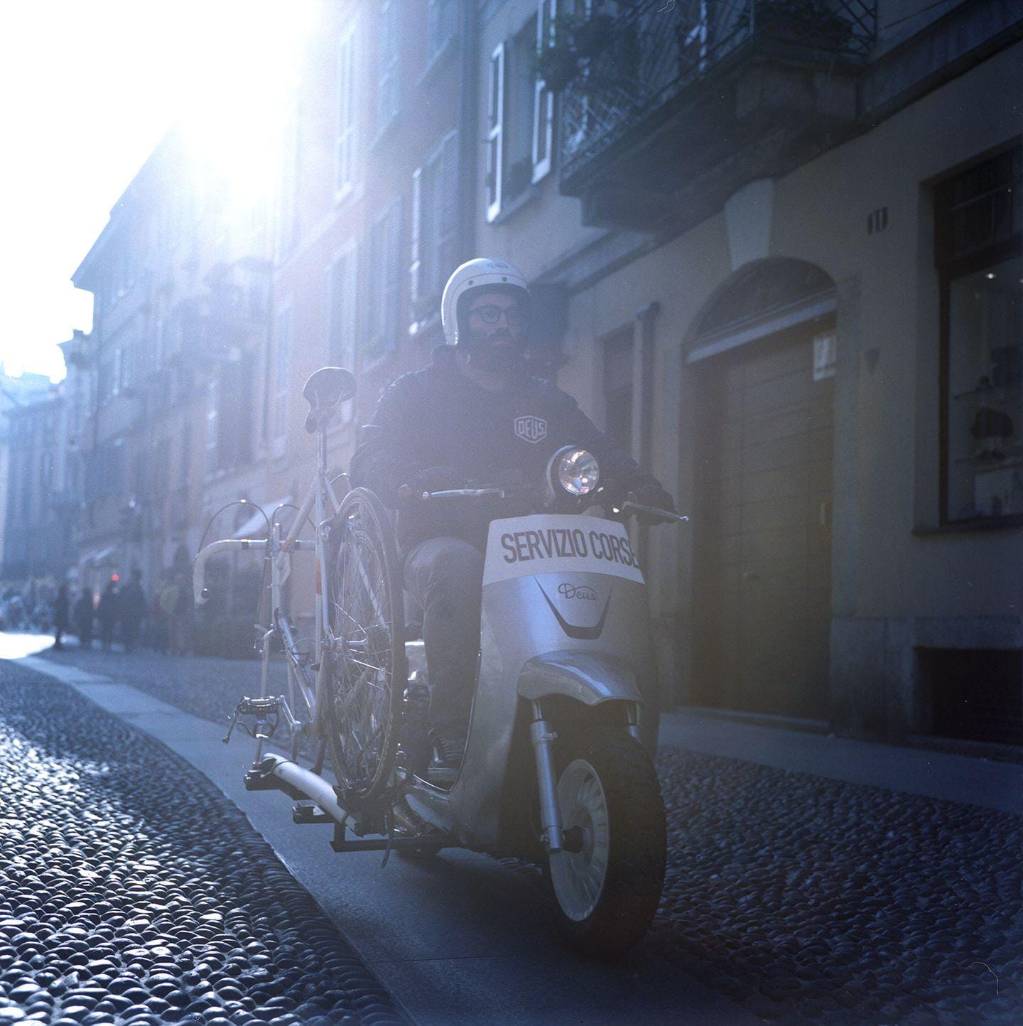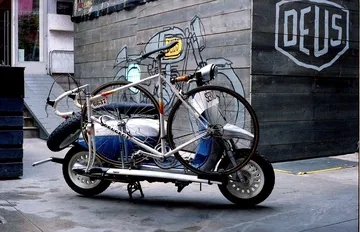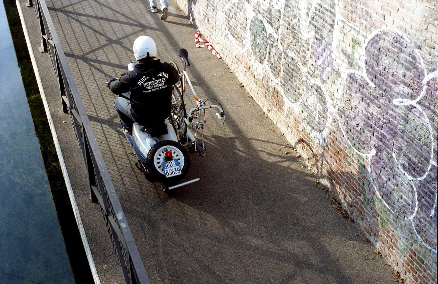 Derny era una figura, un motorista que se situaba delante de un ciclista para reducir su resistencia al vientoo y aumentar su velocidad. En Deus Ex Machina han querido combinar dicha figura con una moto de apoyo, y crear una fusión entre el mundo de la moto y el mundo del ciclismo. Le Derny Concept es una pequeña scooter en la que se puede montar una bicicleta en un anclaje especial, pudiendo disfrutar de ambos transportes de dos ruedas con una flexibilidad muy superior al uso de cada uno de ellos por separado.