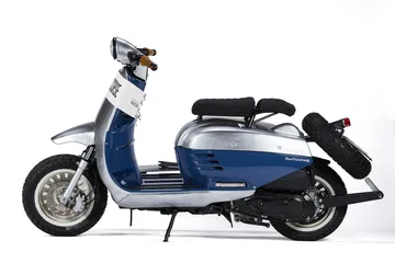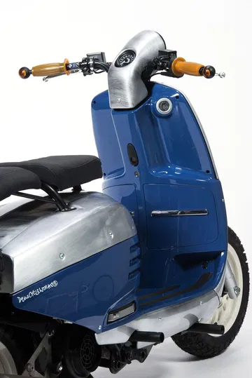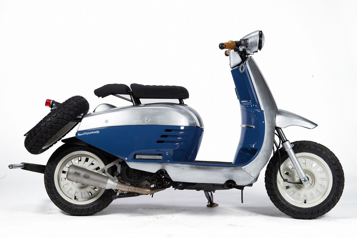 Evidentemente, es palabrería de marketing, este prototipo pretende ensalzar las posibilidades de personalización de esta scooter de aires vintage. Y los chicos de Deus Ex Machina han hecho un excelente trabajo a las órdenes de Peugeot, a decir verdad. Se han basado en el diseño de la S55, una scooter lanzada por Peugeot en los años 50, con chasis y carenado de acero, de formas cercanas a las Vespa de la época. Es por ello que la Django 150 de partida es ahora una máquina mucho más simple, de líneas limpias.