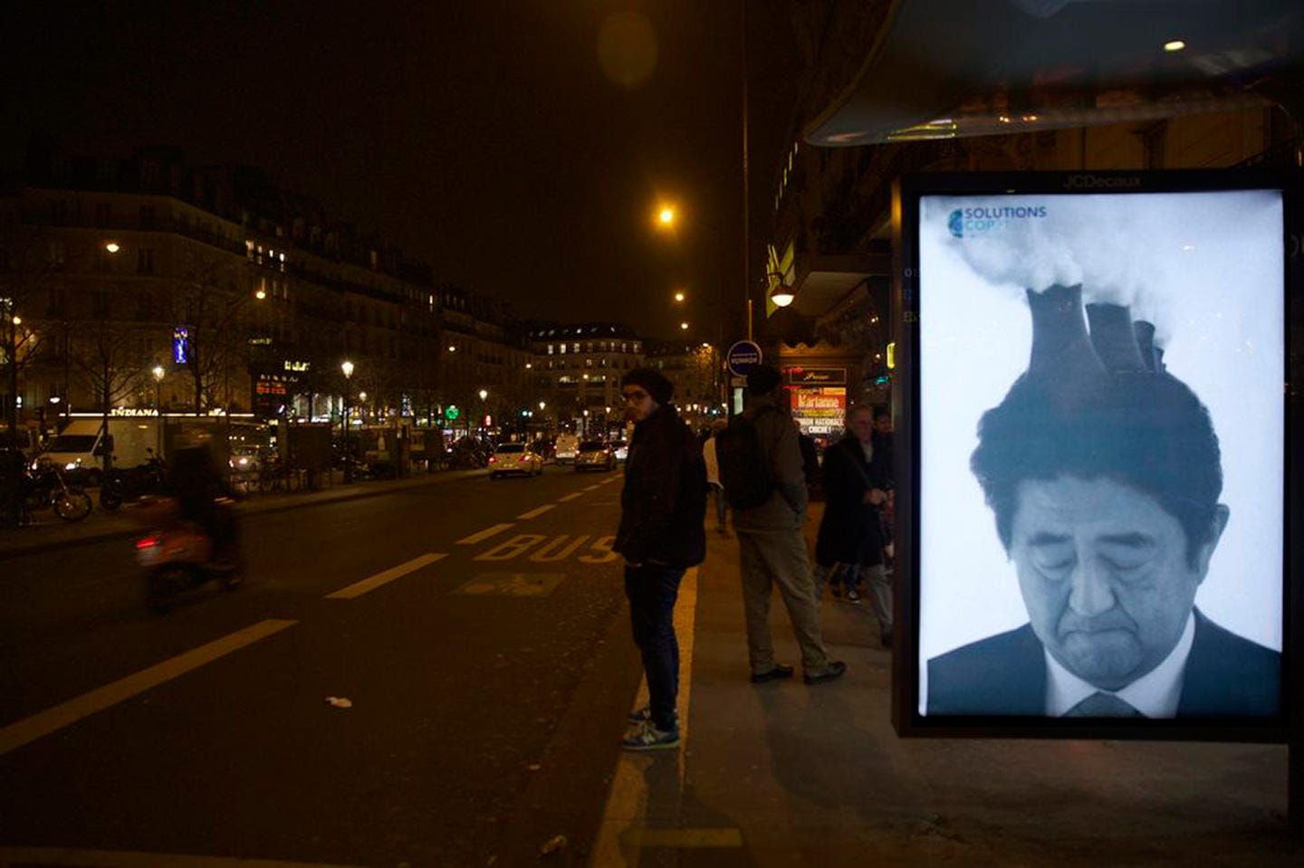 Brandalism tampoco se ha olvidado de Shinzo Abe, y de una nación como Japón, que pese a presentarse muy preocupada por la problemática de la polución, es a su vez uno de los países más dependientes de la energía nuclear.