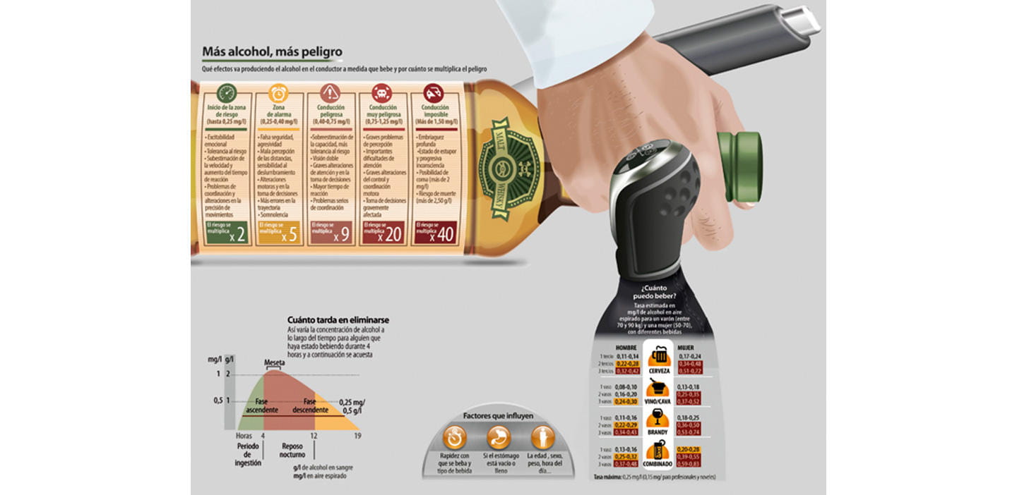 1. El alcohol es probablemente el factor más obvio que debemos tener en cuenta a la hora de coger o no el coche. Incluso respetando los límites legales, el pequeño margen en el que un conductor aún puede conducir, sin dar positivo en la famosa prueba de alcoholemia, que recordemos que no responde a unas cantidades fijas, sino más bien a factores que dependen sobre todo del sexo, y la edad, resulta recomendable no ingerir nada de alcohol. Primero, porque normalmente no es sencillo dosificar las cantidades legales. Segundo, porque incluso en cantidades muy moderadas, y legales, contribuyen a generar somnolencia, lo cual es bastante peligroso si tras la comida, o la cena, tenemos que iniciar un viaje más o menos largo.