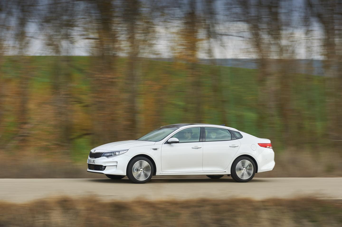 Vista lateral del Kia Optima PHEV destacando su aerodinámica.