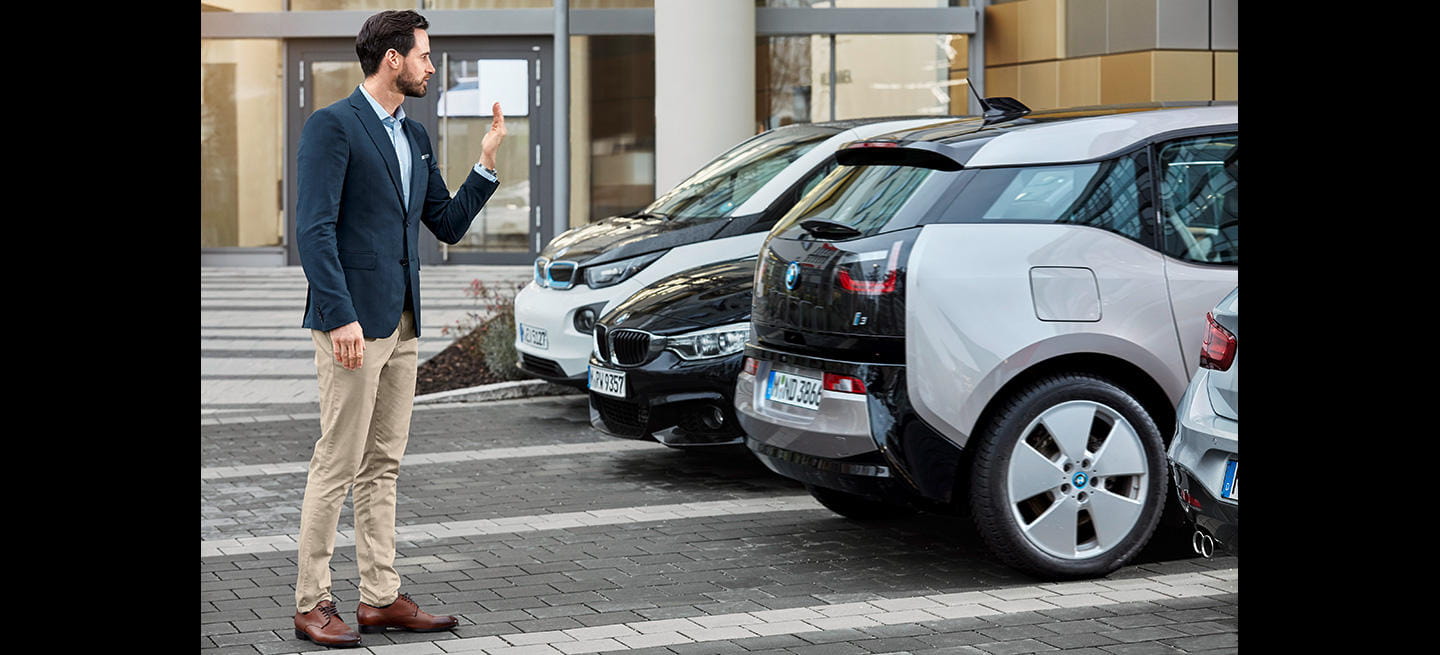 Esta idea brillante de BMW se llama Gesture Control Parking y funcionaría de la siguiente manera. El conductor se bajaría del coche junto a un aparcamiento, y desde el exterior, indicaría al coche las maniobras necesarias para introducirse en ese espacio. Hablamos de maniobras para «tontos». Es decir, el conductor que desde el exterior indica como debe introducirse el coche, en este caso un i3, en el aparcamiento, no ha de precisar las maniobras. El coche ya se encargará automáticamente de engranar marchas, de los giros necesarios describiendo un semicírculo, y de no chocar con los coches que tengan a uno y otro lado.