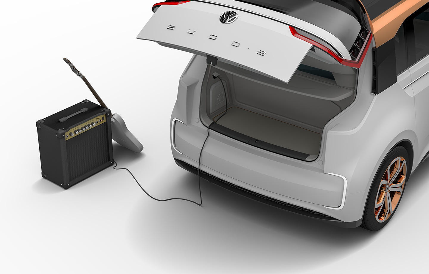 5. El internet de las cosas. Volkswagen anticipa que este BUDD-e estaría permanentemente conectado con la «nube». Entre otras funciones, el BUDD-e podría interactuar con el hogar conectado, para ajustar la calefacción antes de que lleguemos, o comprobar si nuestros hijos han llegado a casa. Incluso contaría con una solución realmente curiosa, un compartimento en el parachoques trasero que está destinado a funcionar como un buzón, para recoger nuestros pedidos en internet, o incluso comida que requiera refrigeración, con un acceso seguro, mediante código, tras autorizar al mensajero a realizar la entrega.
