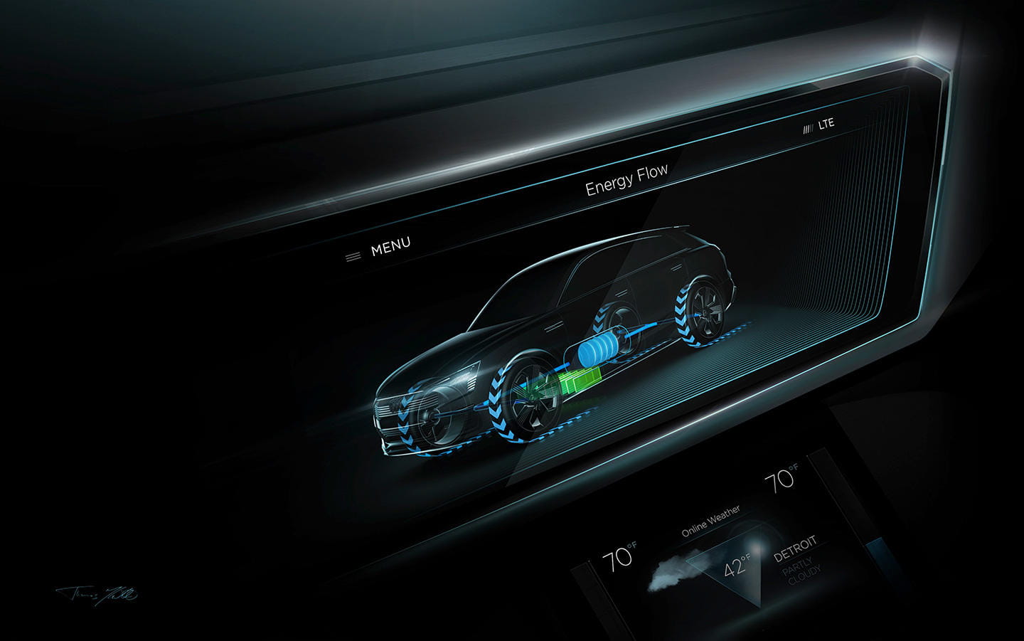 Su mecánica se basa en dos motores eléctricos, uno de 140 kW en el eje trasero y otro de 90 kW en el delantero. Hablaríamos de 190 CV detrás y 122 CV delante, con los que aceleraría de 0 a 100 km/h en menos de 7 segundos y alcanzaría los 200 km/h.