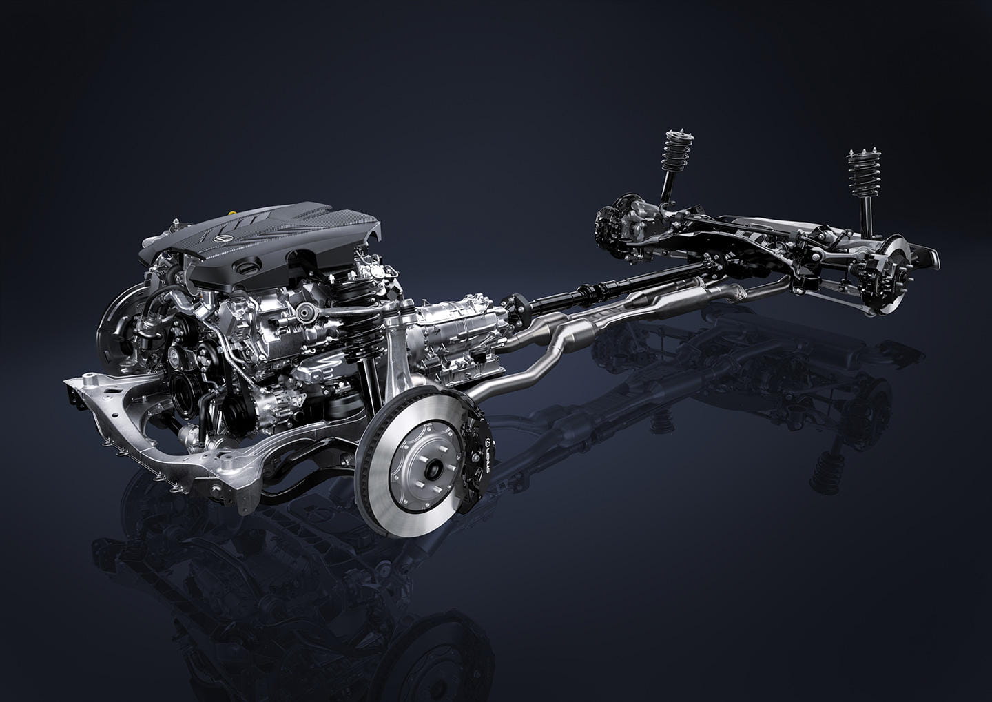 El Lexus LC 500 se ha construido sobre la nueva plataforma de tracción trasera de la marca, que será la base sobre la que se construyan los nuevos modelos de tracción trasera y delantera de Lexus. Uno de los objetivos de Lexus pasaba por situar todo el peso, en la medida de lo posible, en la posición más baja y centrada del coche. Para ello situaron el motor muy retrasado, con buena parte de su peso reposando por detrás del eje delantero.