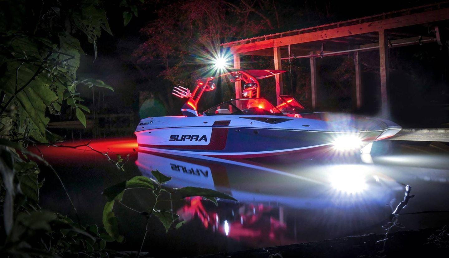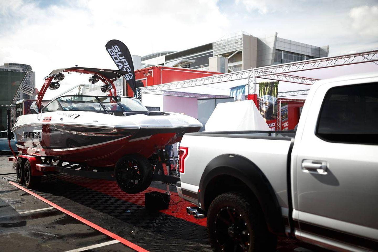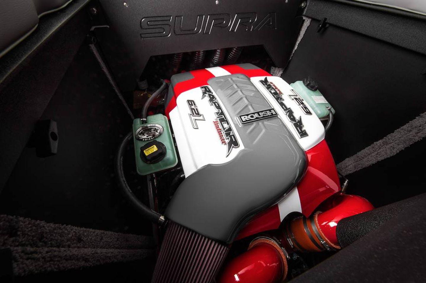 Bajo el casco del barco, Supra Boats – en colaboración con Roush, afamado preparador de Ford – ha montado una versión potenciada del 6.2 V8 del Ford F-150 SVT Raptor de primera generación. El motor ahora desarrolla 500 CV y más de 780 Nm de par, que se transmite al agua mediante dos toberas de chorro. La aceleración de esta lancha es superior a la de las Supra SE, la gama de más potencia y rendimiento de Supra Boats, que además patrocina campeonatos de esquí acuático y wakeboard.