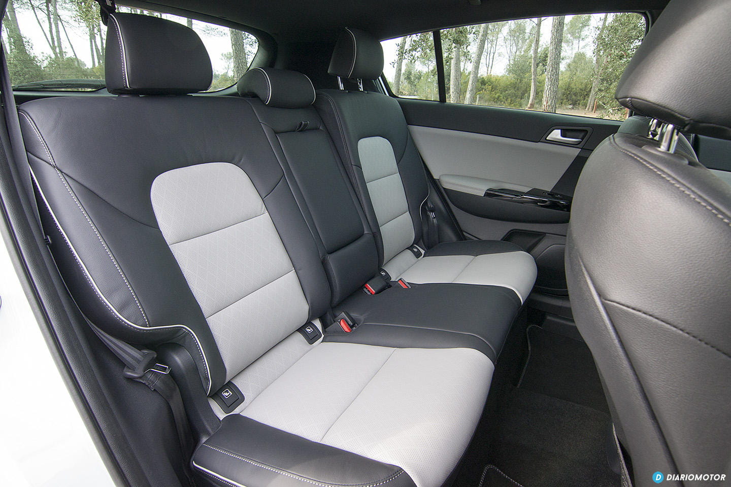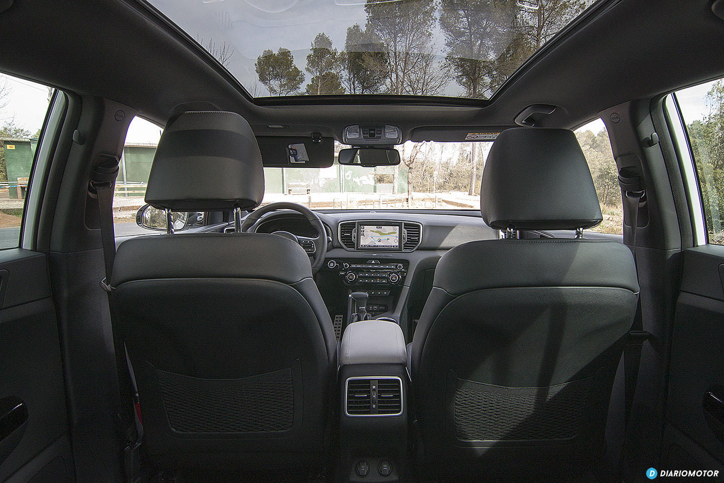 El resto de plazas resultan amplias y cómodas, y el Sportage vuelve a destacar por su gran amplitud interior, tanto en habitáculo como en maletero y muy especialmente en las plazas traseras. Hablando de maletero, contamos con un espacio de carga de 503 litros, sin rueda de repuesto, aunque bajo el fondo plano hay un material de relleno (donde tendría que ir la rueda de repuesto) que bien podría extraerse y sacarle bastante más fondo (eso sí, irregular) al espacio de carga.